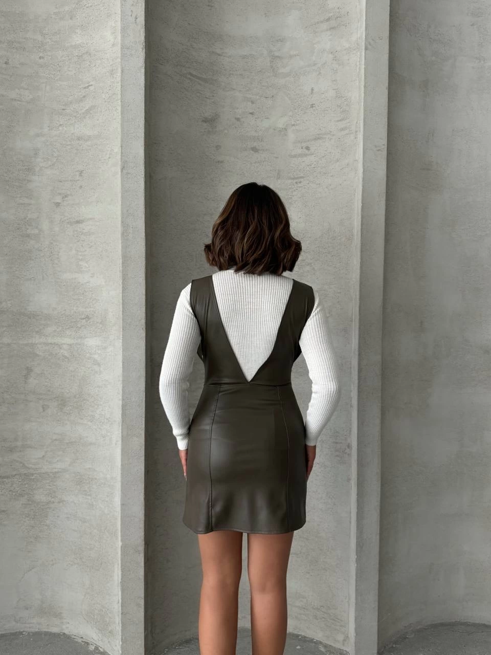 Deri Jile Elbise Haki W24796 (Beden: S)