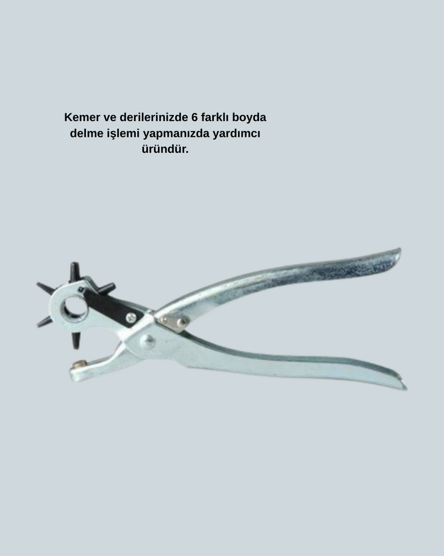 Pense, yüksek kaliteli metal malzemeden üretilmiş olup uzun yıllar deformasyon göstermeden kullanılabilir. Çelik mekanizması sayesinde darbeye dayanıklı ve esneme yapmayan bir gövde sunar. Bu da deliklerin daha düzgün ve net açılmasını sağlar. Döner başlığı sıkı geçmeli yapıdadır; işlem sırasında kaymaz veya boşluk oluşturmaz. Bu sayede aynı boyutta, pürüzsüz ve temiz delikler elde edilir. Ayakkabı tamirinden kemer delme işlemine kadar tüm zorlu uygulamalarda güvenle kullanılabilir.