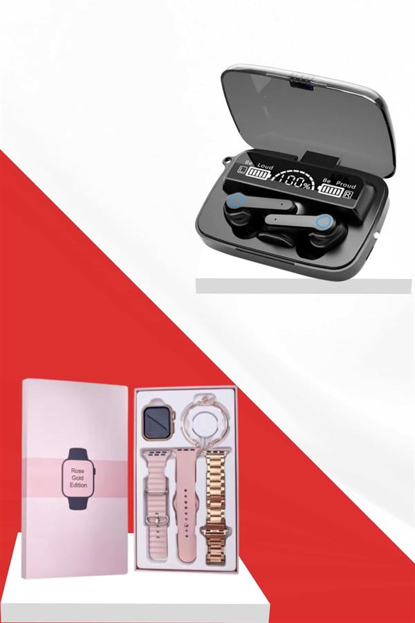 Dijital Göstergeli Powerbank Bluetooth Kulaklık ve Yeni Nesil Amoled Ekran Akıllı Saat