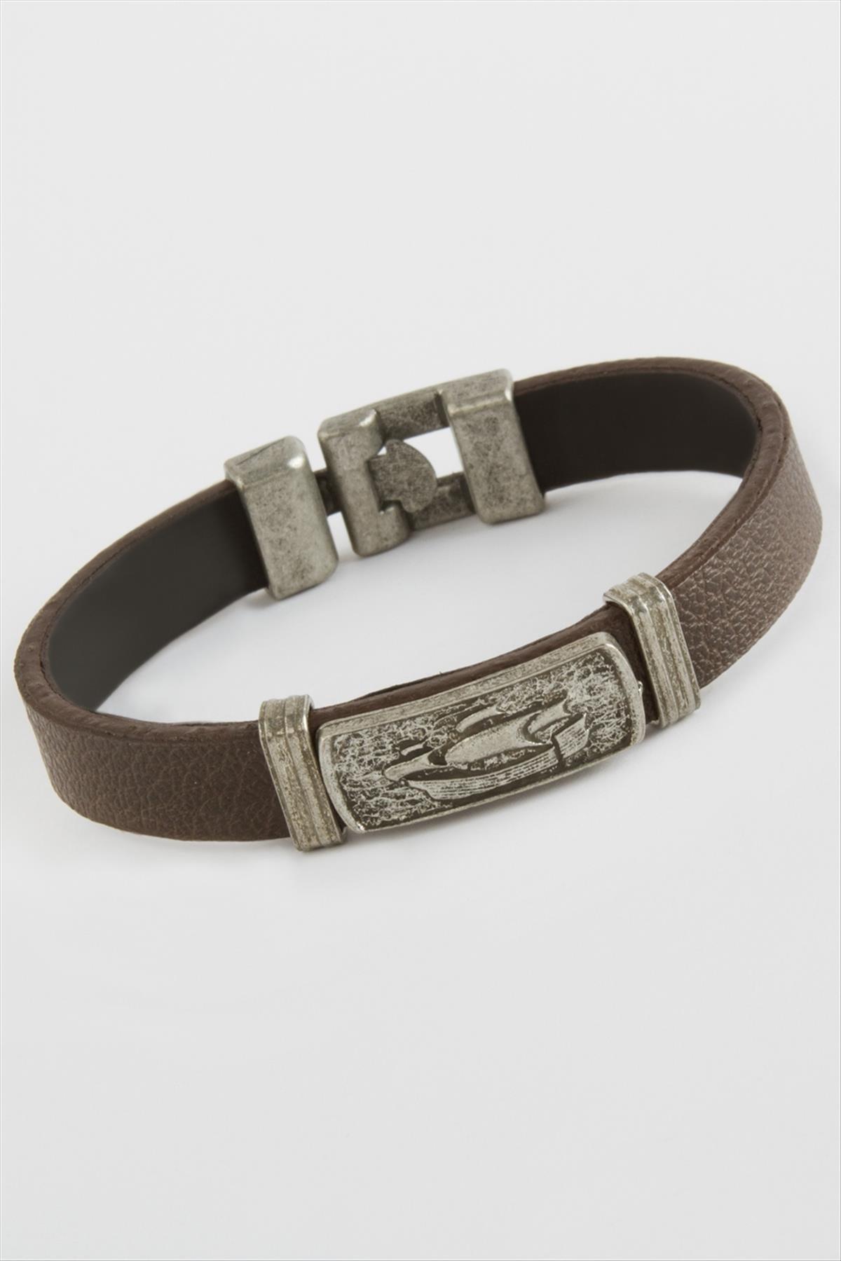 Dikdörtgen Kaliteli Suni Deri Bileklik-Kahverengi