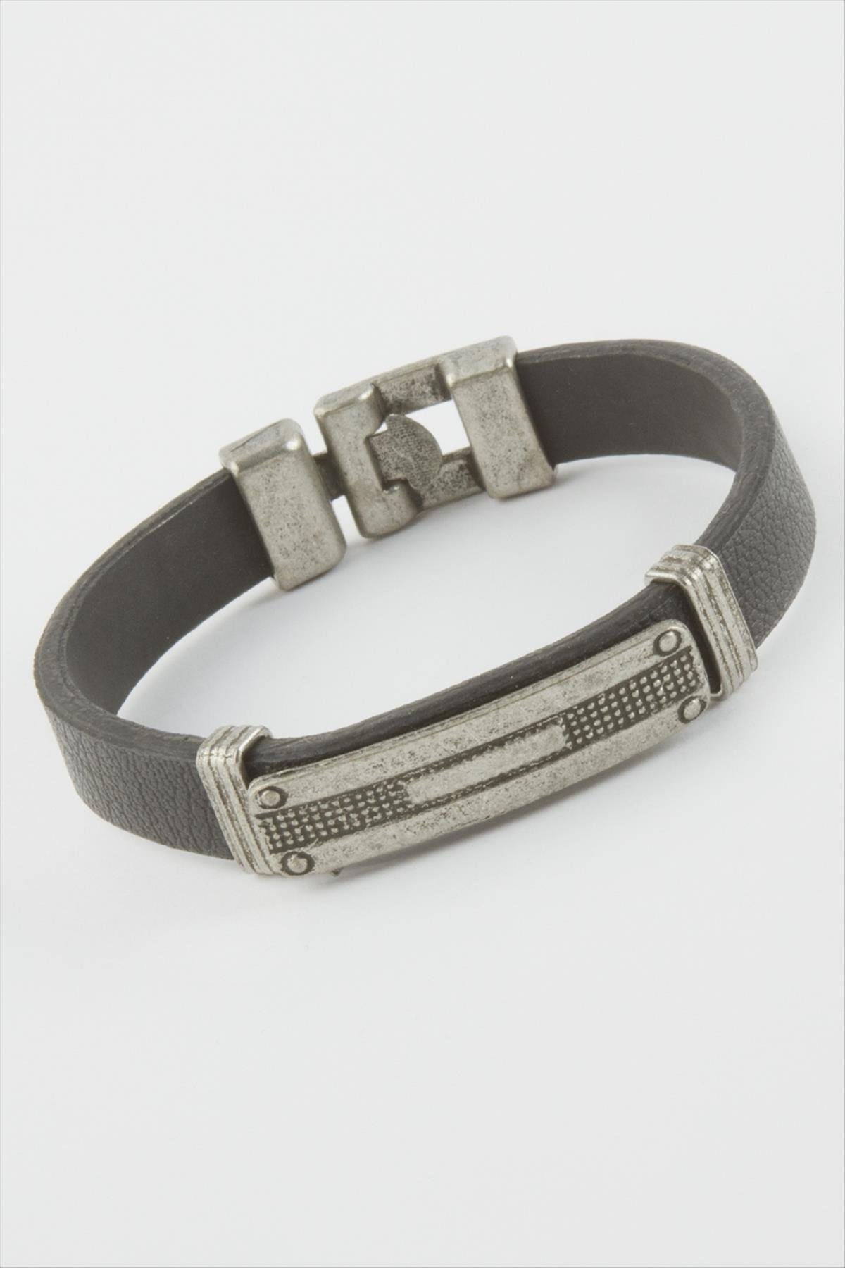 Dikdörtgen Suni Deri Bileklik-Siyah