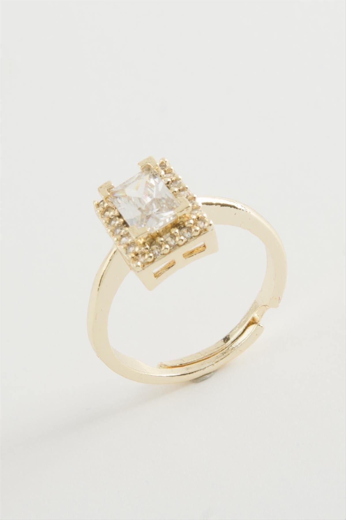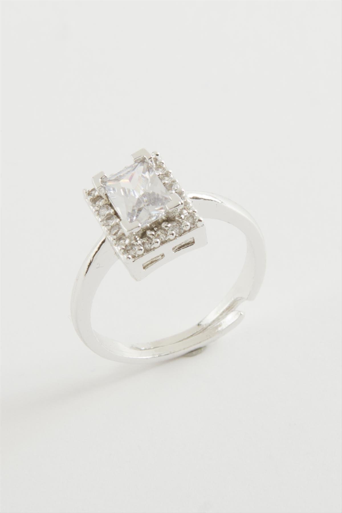 Dikdörtgen Tek Taşlı Yüzük-Gümüş Rengi