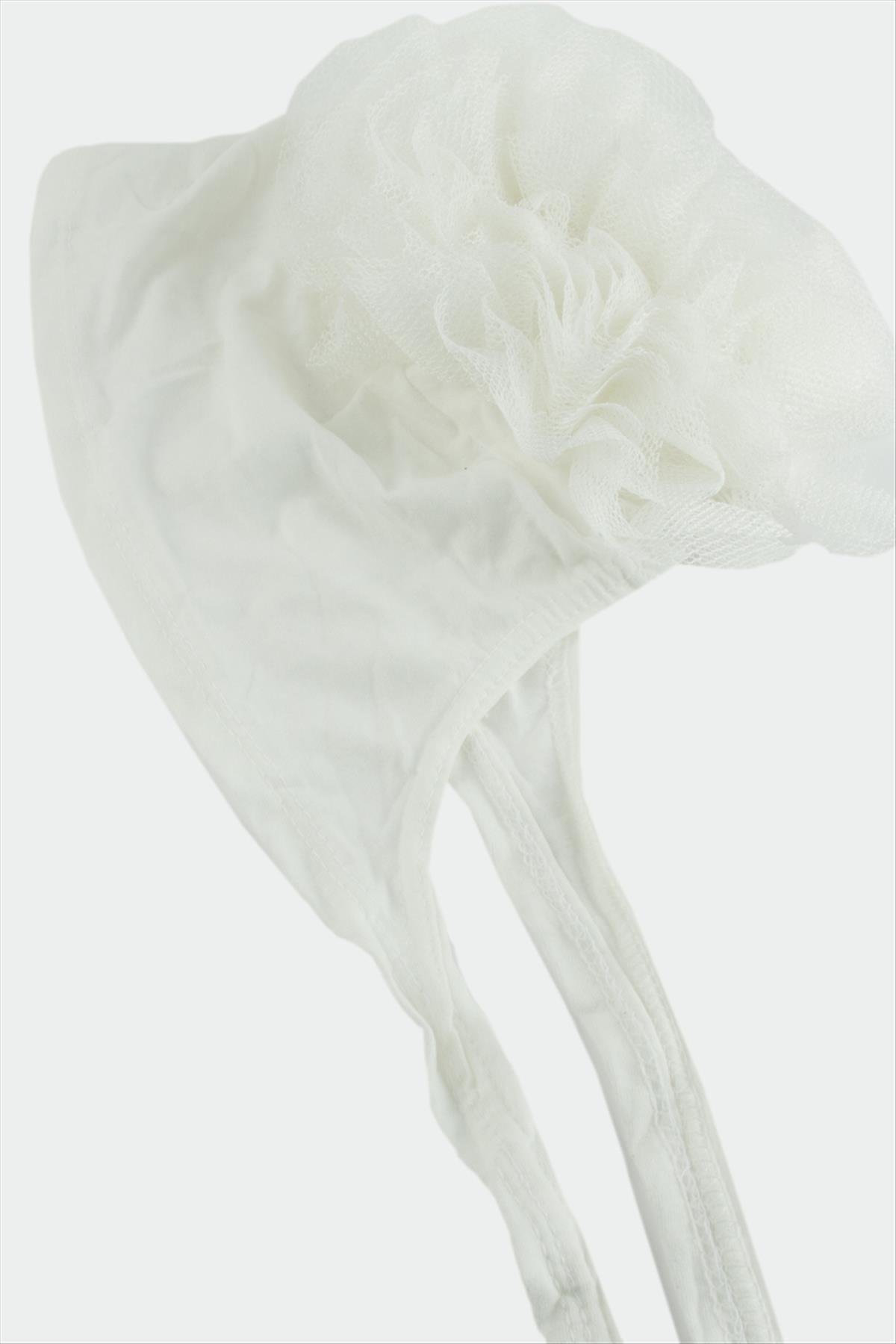 Dikişli Fırfırlı Bone-Beyaz
