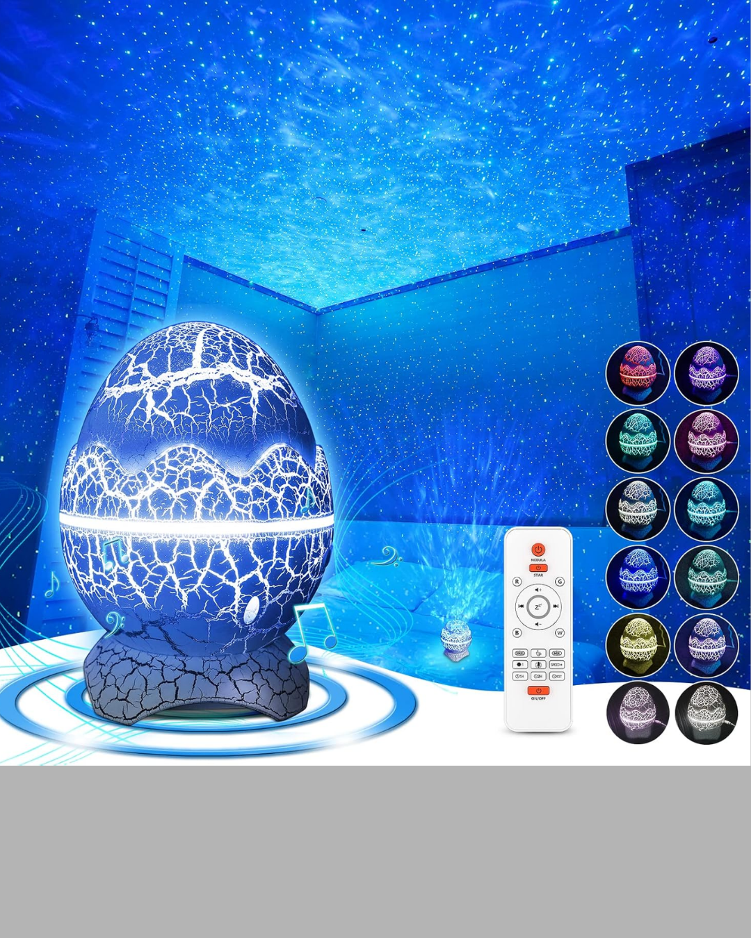 Odanızı bir galaksiye dönüştürmeye hazır olun! Bu benzersiz dinozor yumurta gece lambası projektörü, 14 farklı renk seçeneğiyle duvarlarınıza ve tavanınıza büyüleyici bir yıldızlı gökyüzü atmosferi yansıtıyor. Yüksek çözünürlüklü projeksiyon teknolojisi sayesinde nebula ve yıldız ışıkları, odanızın her köşesine net ve canlı şekilde yansır.