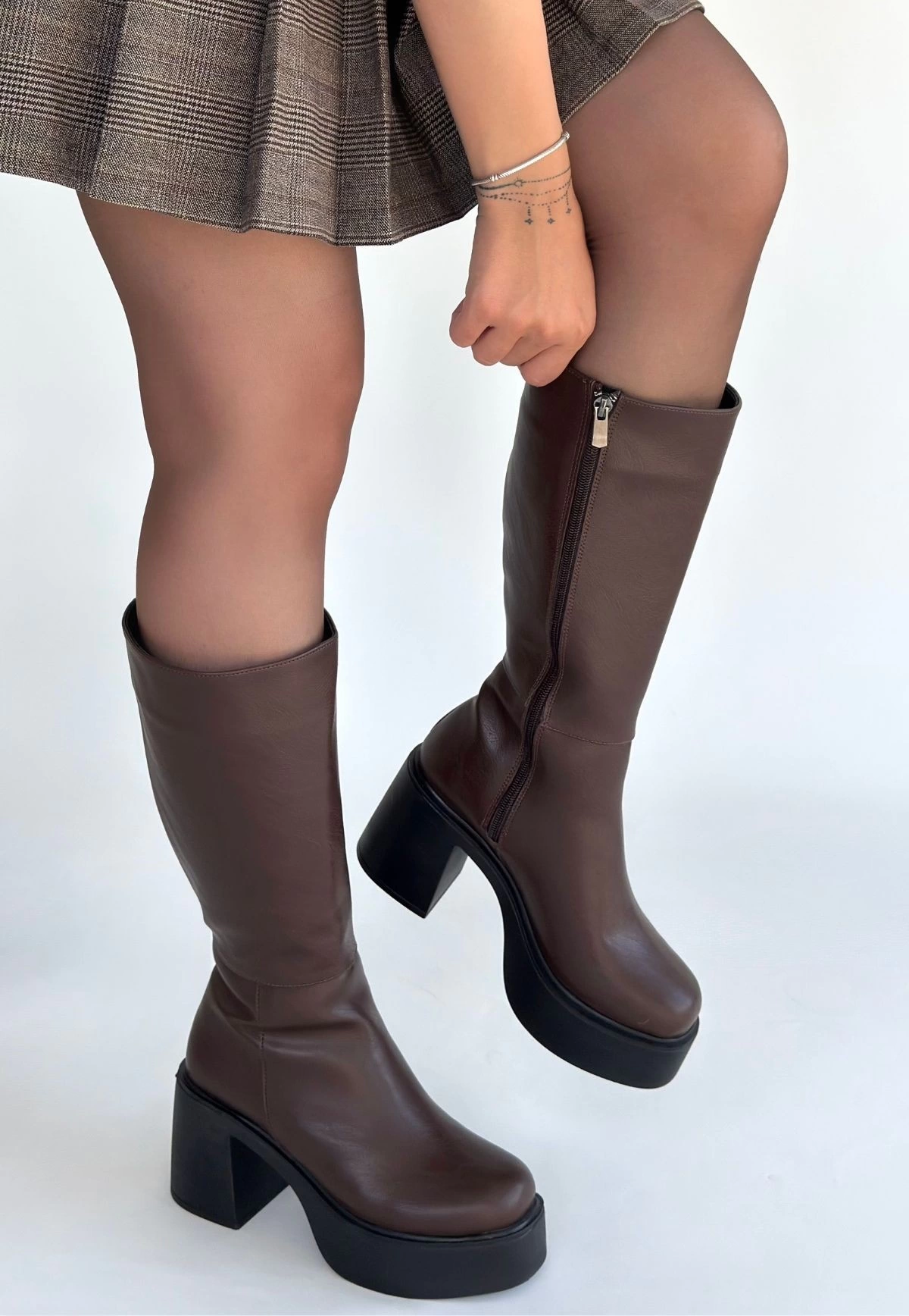 Disan Kahverengi Cilt Topuklu Çizme (Numara: 37)
