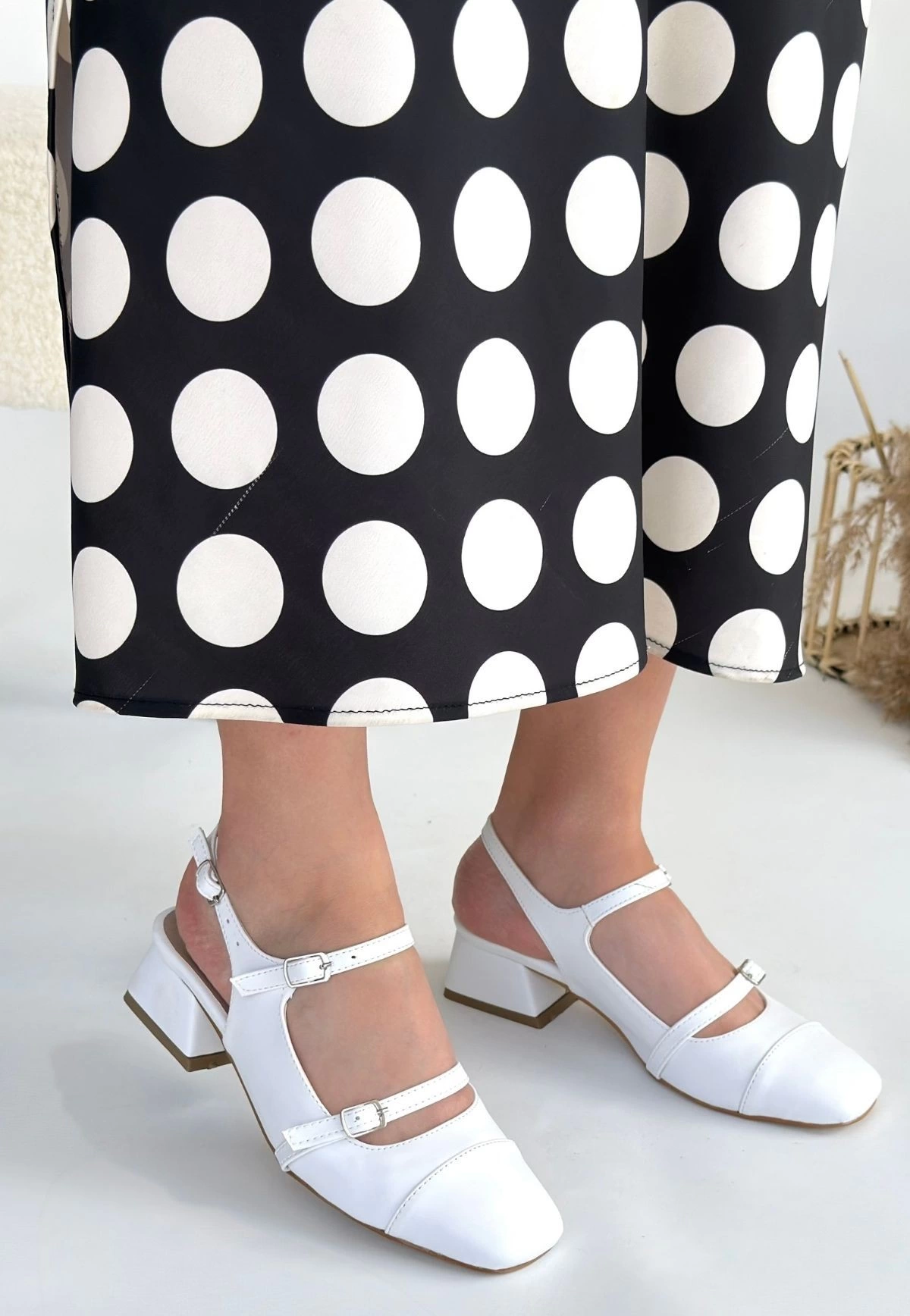 Doran Beyaz Cilt Topuklu Ayakkabı (Numara: 36)