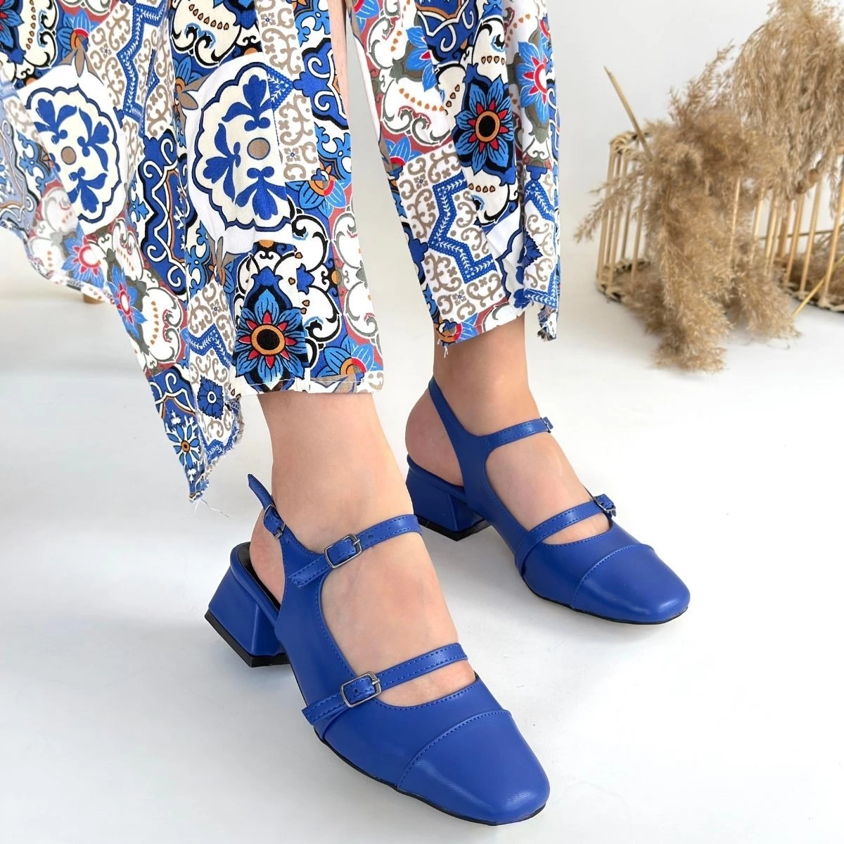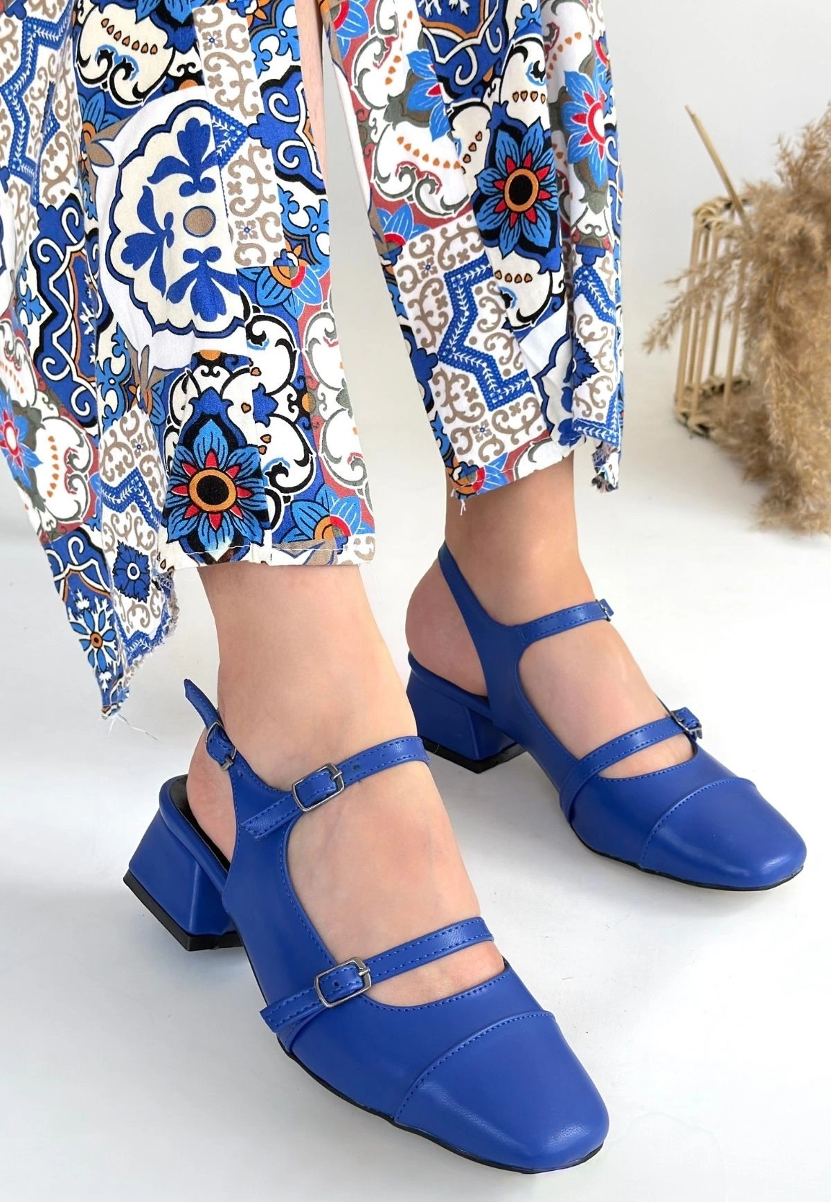 Doran Mavi Cilt Topuklu Ayakkabı (Numara: 39)
