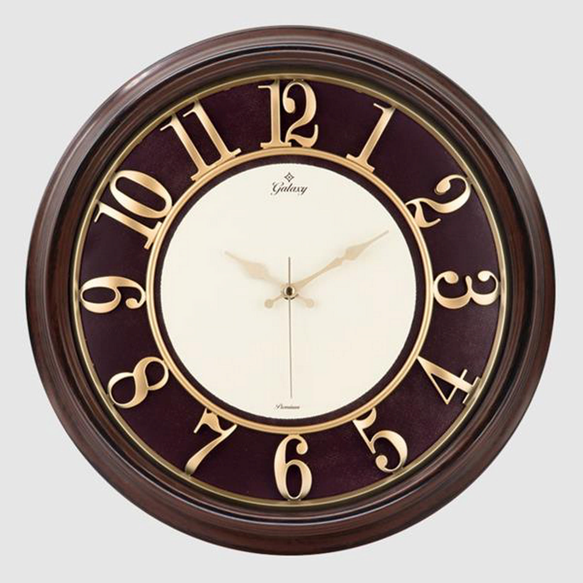 DUVAR SAATİ KAHVERENGİ İÇİ BORDO 46CM, KABARTMA RAKAM, METAL AKREP YELKOVAN AKAR SANİYE