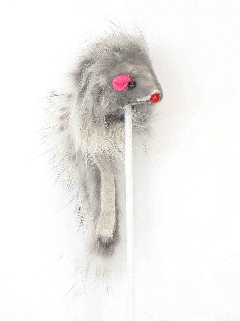 19 cm yüksekliğinde vantuz ayaklığı ile sert zemine tutturularak kullanılabilen uç kısmında peluş fare olan kedi oyuncağı.