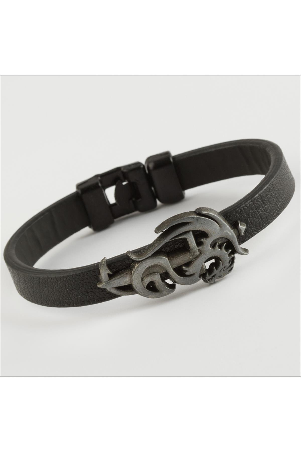 Ejderha Kaliteli Suni Deri Bileklik-Siyah