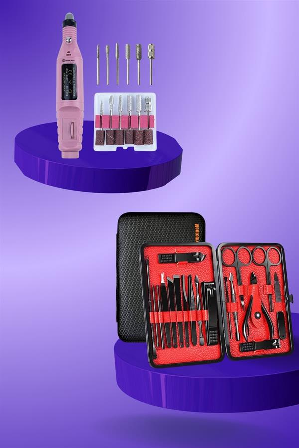Elektrikli Manikür Pedikür Seti İkili Set 17 Parça Tırnak Bakımı Nasır Temizleme Tırnak Şekillendirme