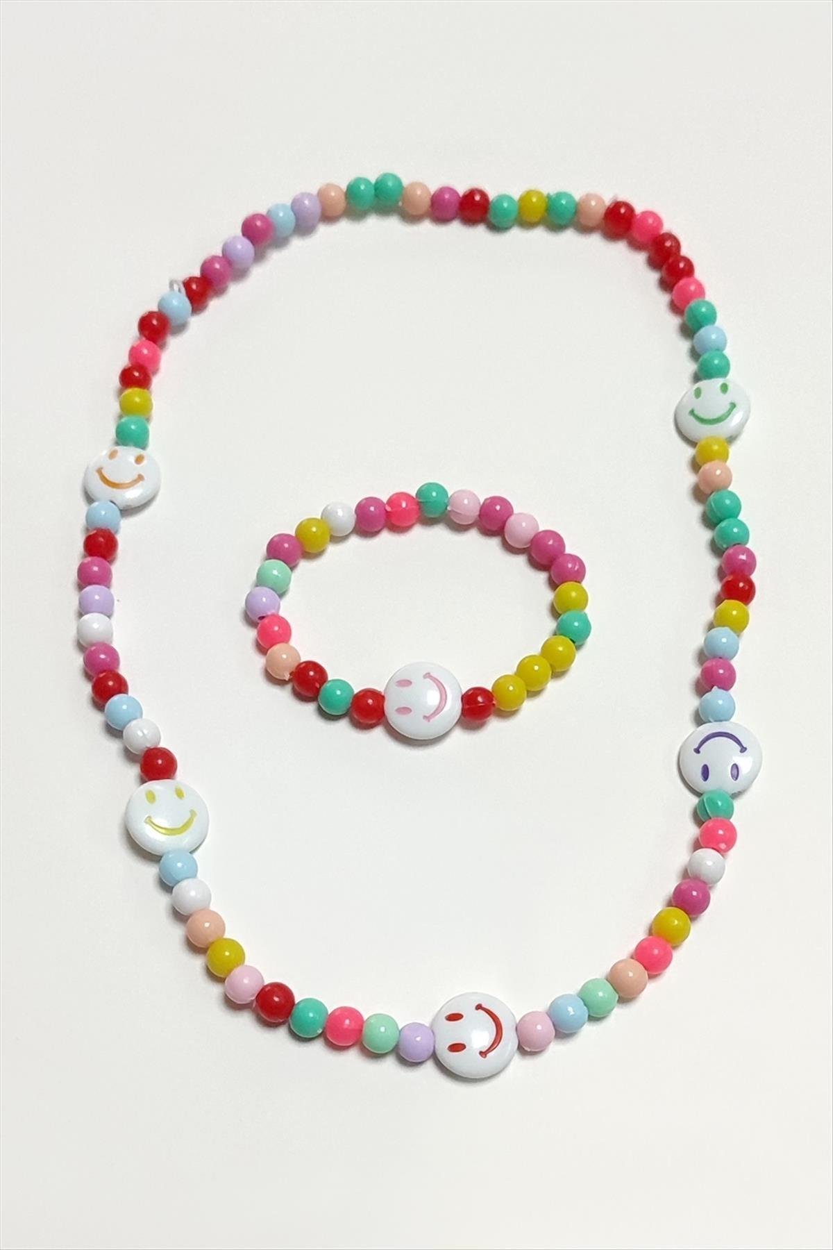 Emoji Boncuk Çocuk Set Kolye-Renkli