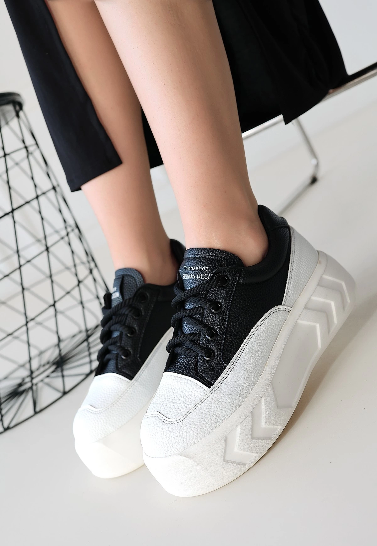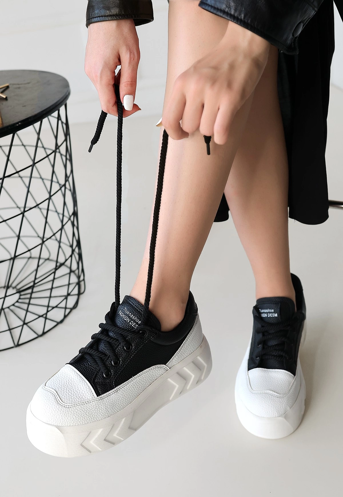 Emwa Siyah Cilt Bağcıklı Spor Ayakkabı (Numara: 38)