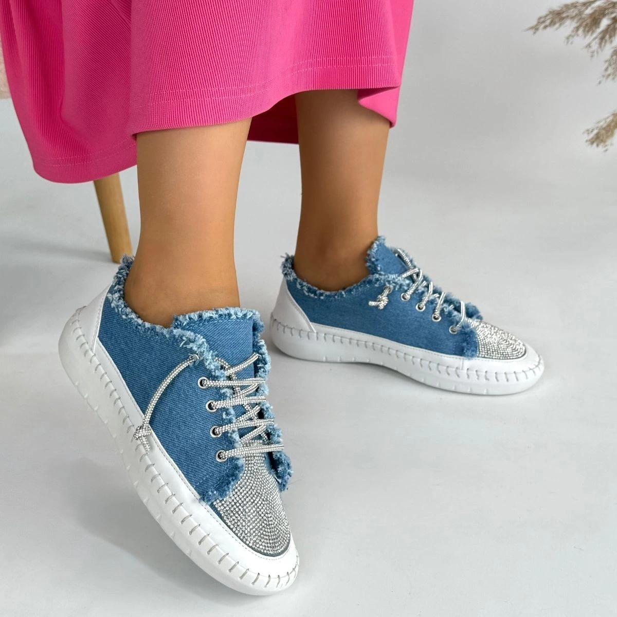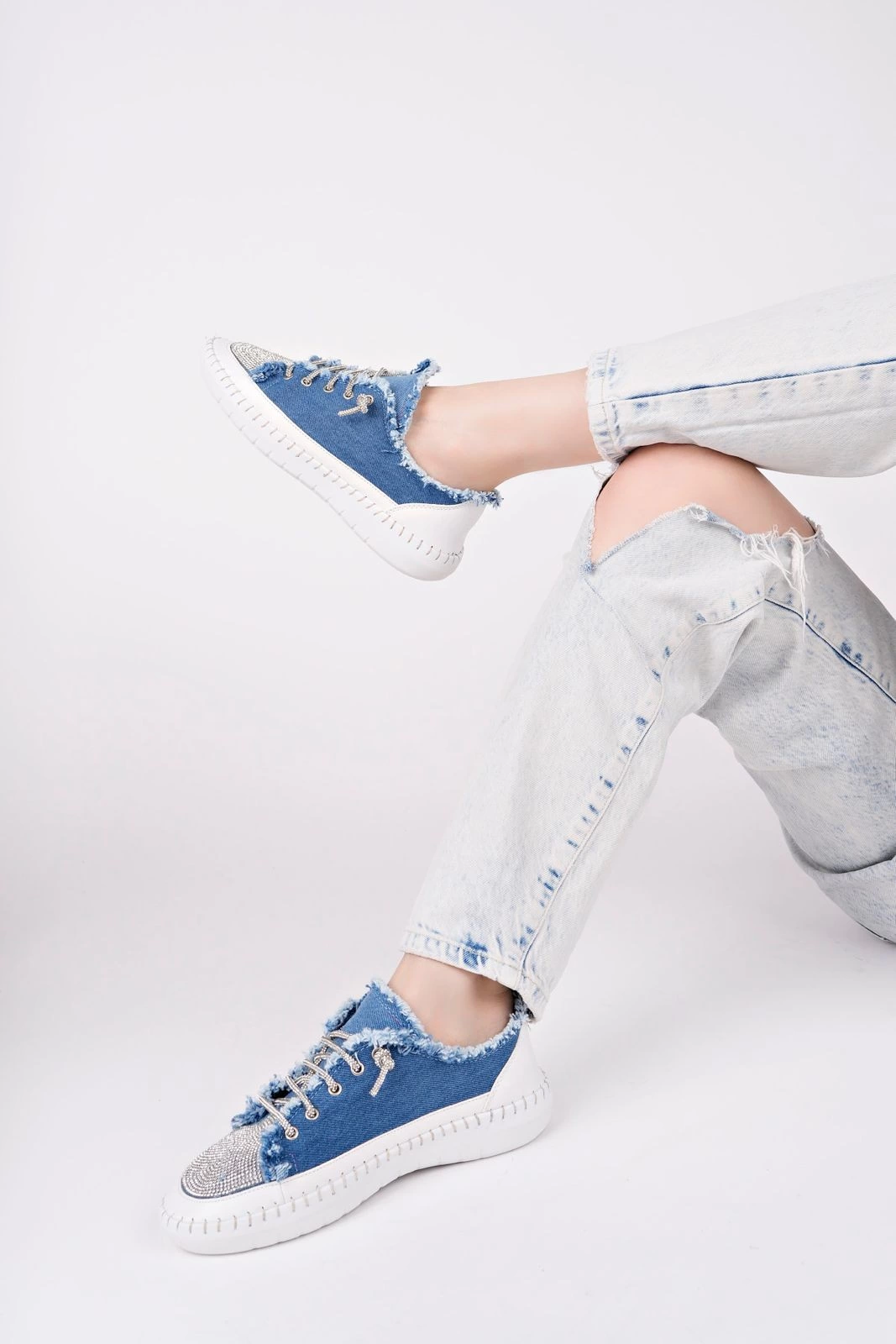 Enber Mavi Kot Bağcıklı Spor Ayakkabı (Numara: 36)
