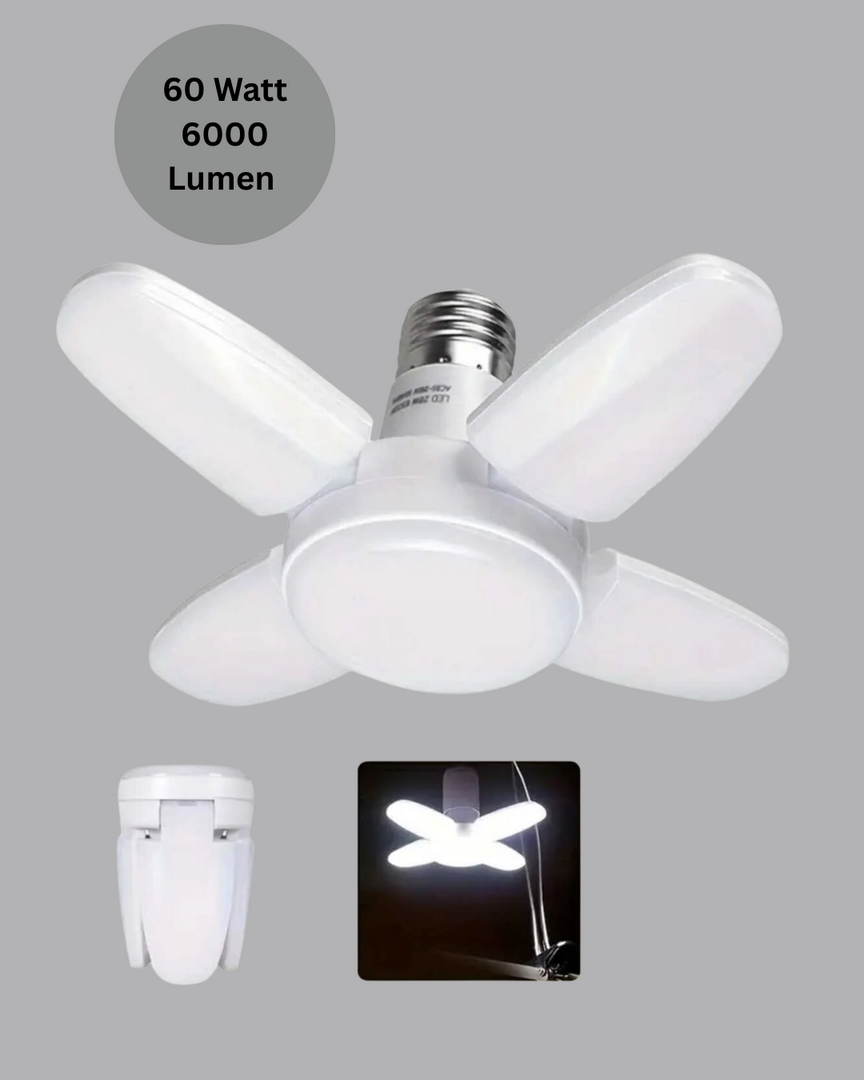 4 kollu LED pervane ampül, geniş alan aydınlatmasında yüksek verimlilik sunan yenilikçi bir üründür. 60 Watt gücü ve 6000 lumen ışık kapasitesi ile tek başına güçlü bir aydınlatma sağlar. Beyaz ışık rengi sayesinde çalışma alanlarında ideal görüş oluşturur.