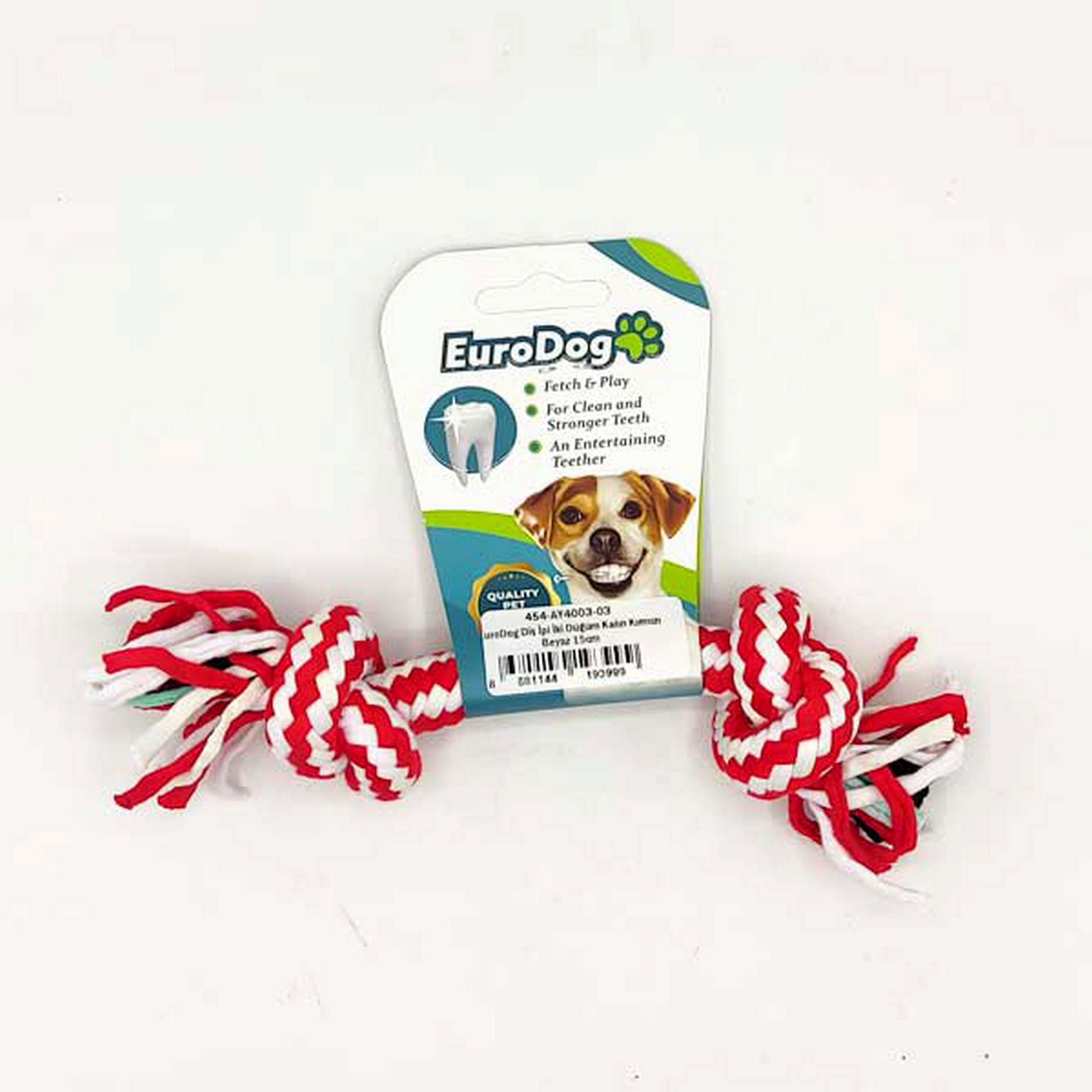 EuroDog Diş İpi İki Düğüm İnce Kırmızı Beyaz 15 cm