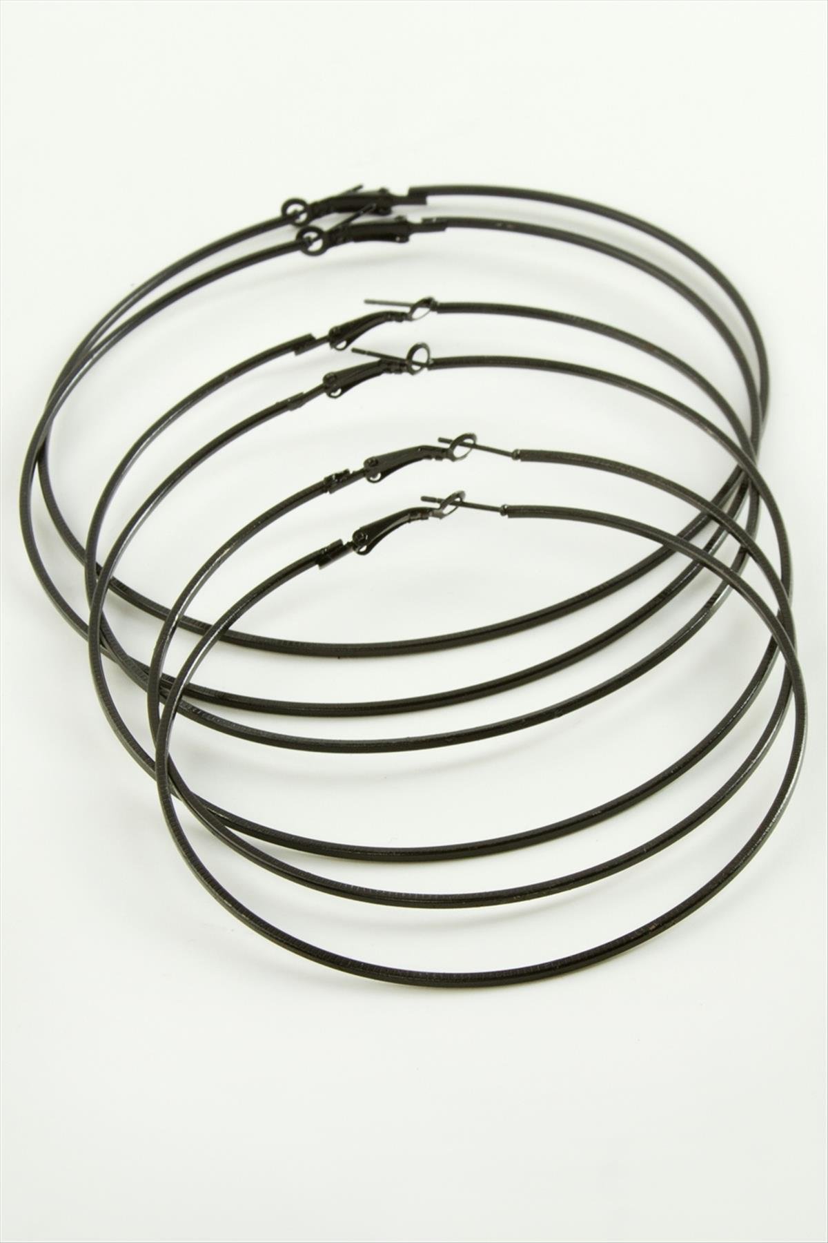 Ezme Çizgili Metal Halka Küpe 6 Adet-Siyah
