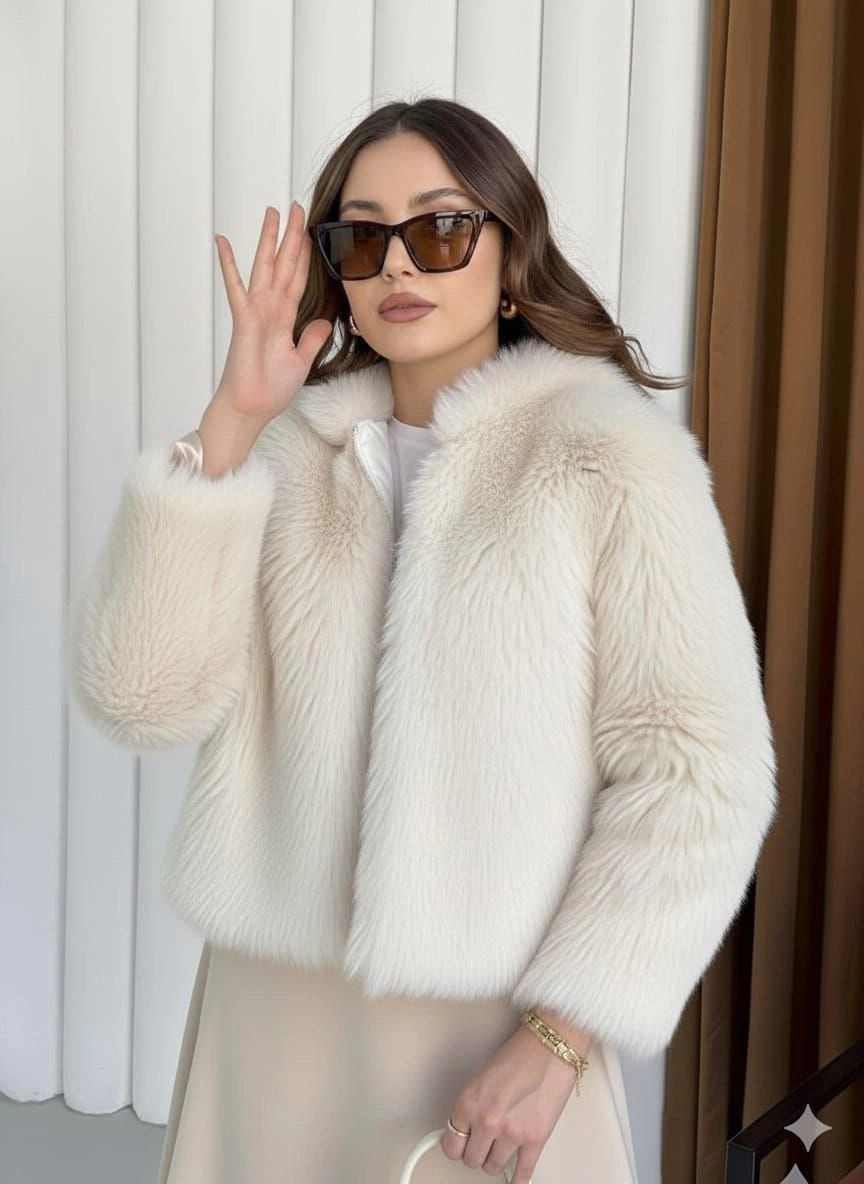 Şık detayları ve rahat kesimiyle her tarza uyum sağlayabilen Fermuarlı Kısa Kürk Siyah Ekru T7746, soğuk havalarda sizi sıcacık tutarken stilinizi de tamamlar.