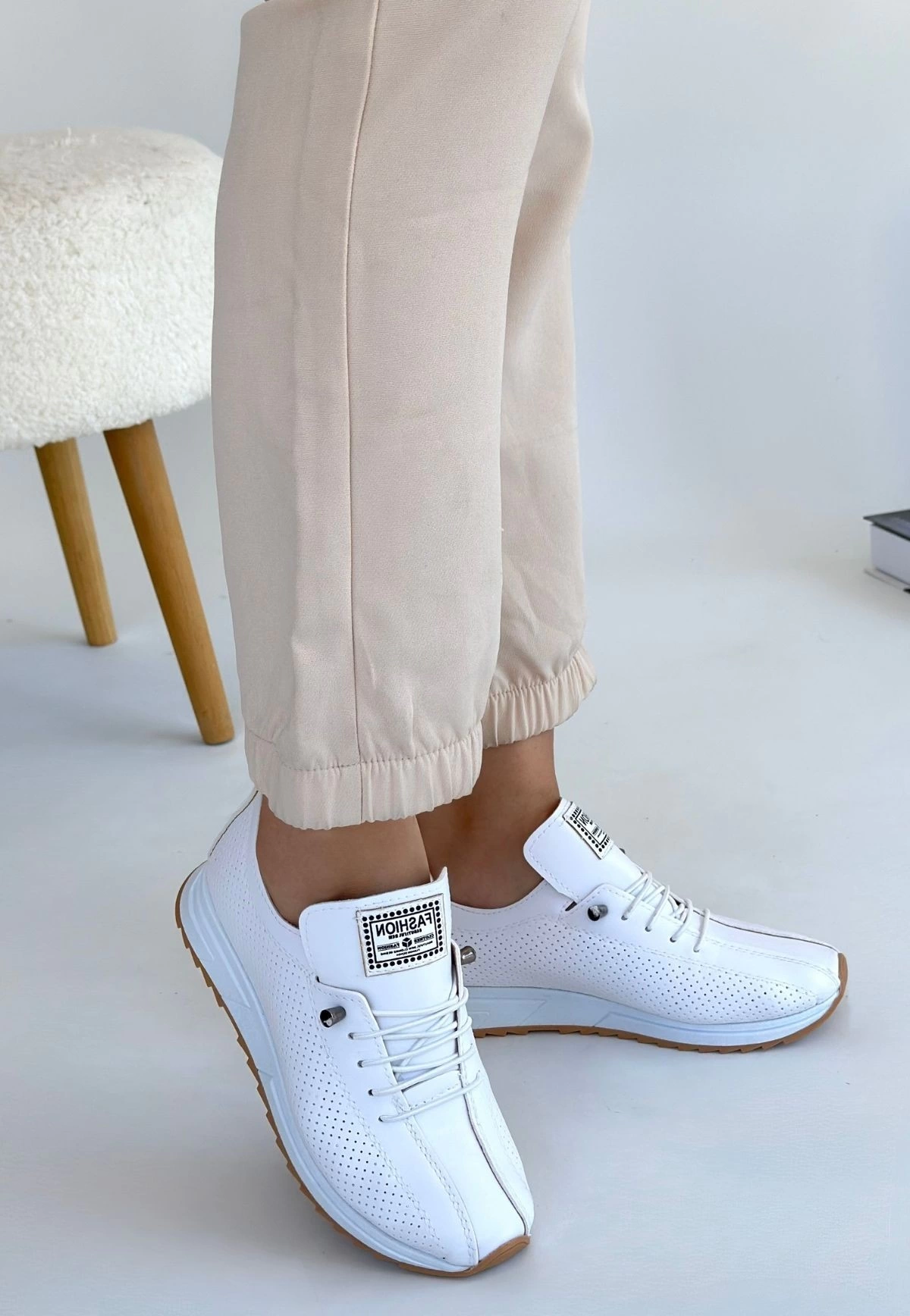 Fiert Beyaz Cilt Bağcıklı Spor Ayakkabı (Numara: 37)