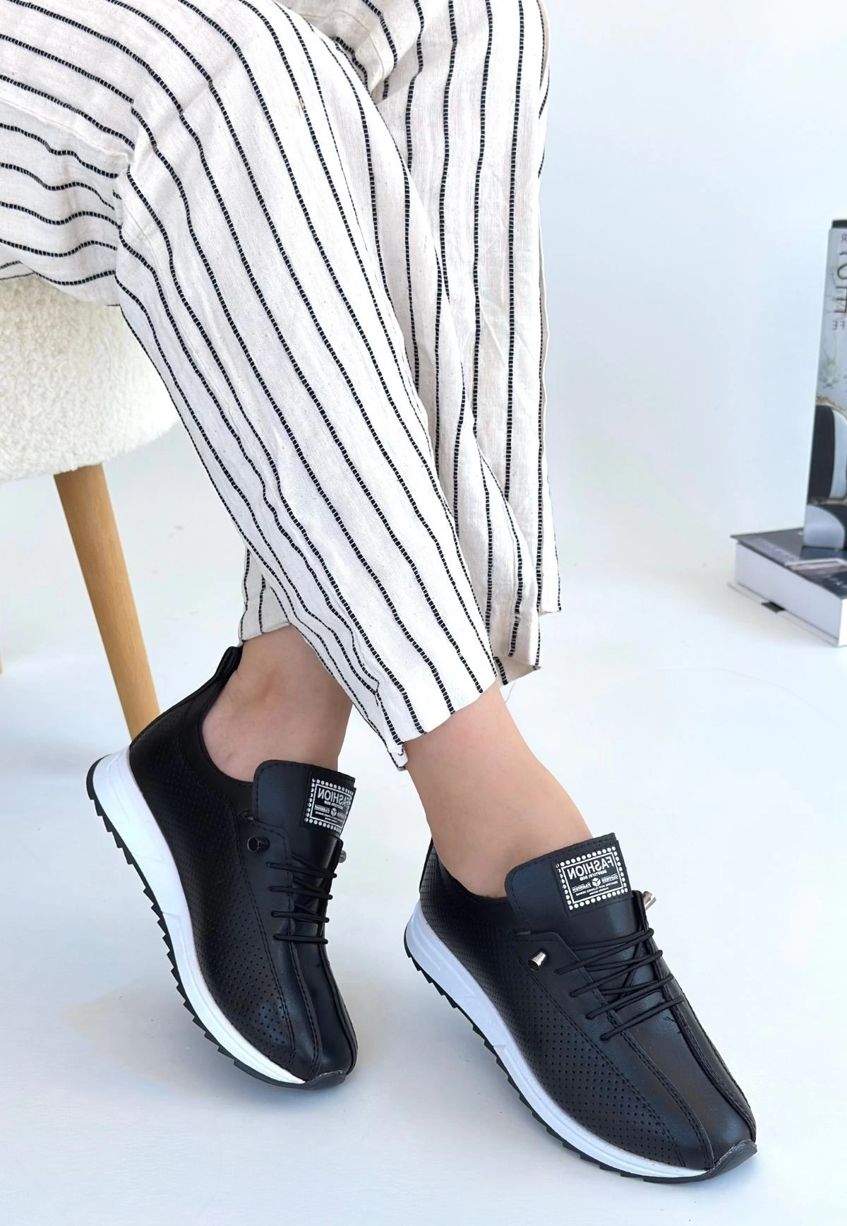 Fiert Siyah Cilt Bağcıklı Spor Ayakkabı (Numara: 37)