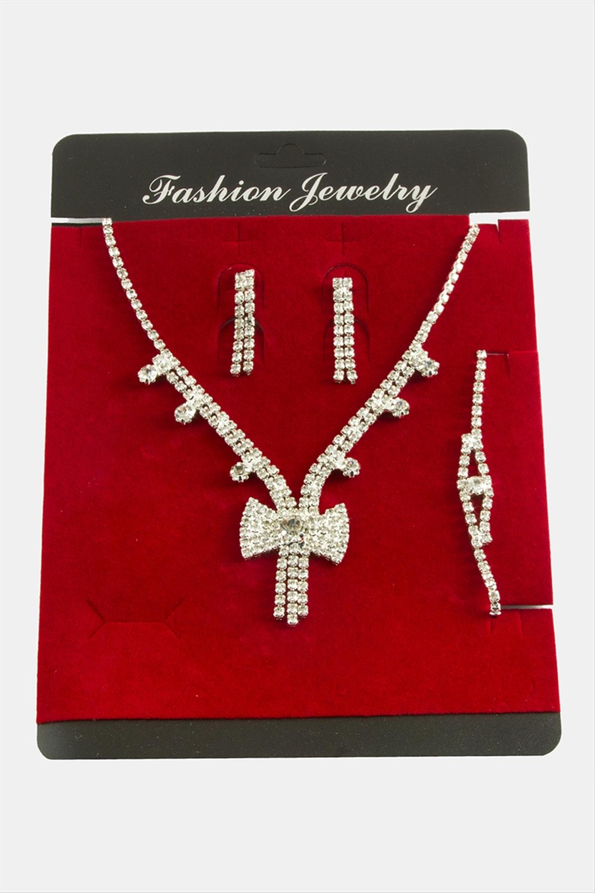 Fiyong Taşlı Lüks Suyolu Set Kolye-Gümüş Rengi