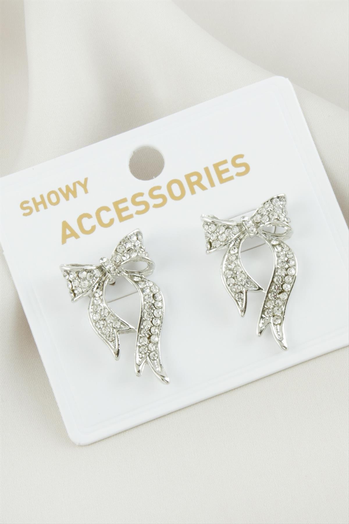 Fiyong Taşlı Metal Küpe-Gümüş Rengi