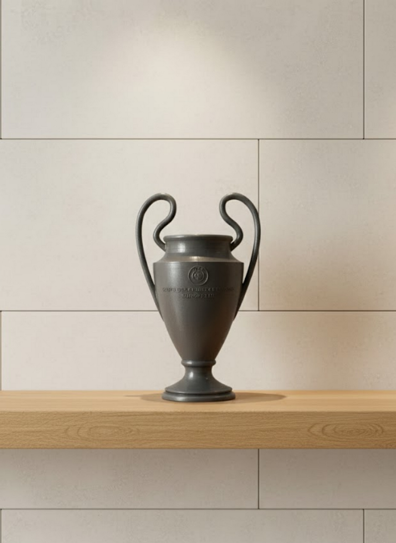 UEFA model esintili Füme Kupa 25 cm, minimal renk tonu ve zarif formuyla spor atmosferini dekorasyona taşıyan özel bir üründür. Hem klasik hem modern ortamlara uyum sağlayabilen tasarımıyla dikkat çeker. Kupayı tanımlayan uzun kulplar ve gövde üzerindeki kabartma detaylar, ürünün gerçekçi ve koleksiyonluk bir değer taşımasını sağlar. Çalışma masasında motivasyon simgesi, vitrinlerde koleksiyon ürünü, spor temalı etkinliklerde sembolik ödül olarak kullanılabilir. Şık görünümü sayesinde hem kadın hem erkek kullanıcılara hitap eder. Ev dekorasyonu için güçlü bir tamamlayıcı objedir.