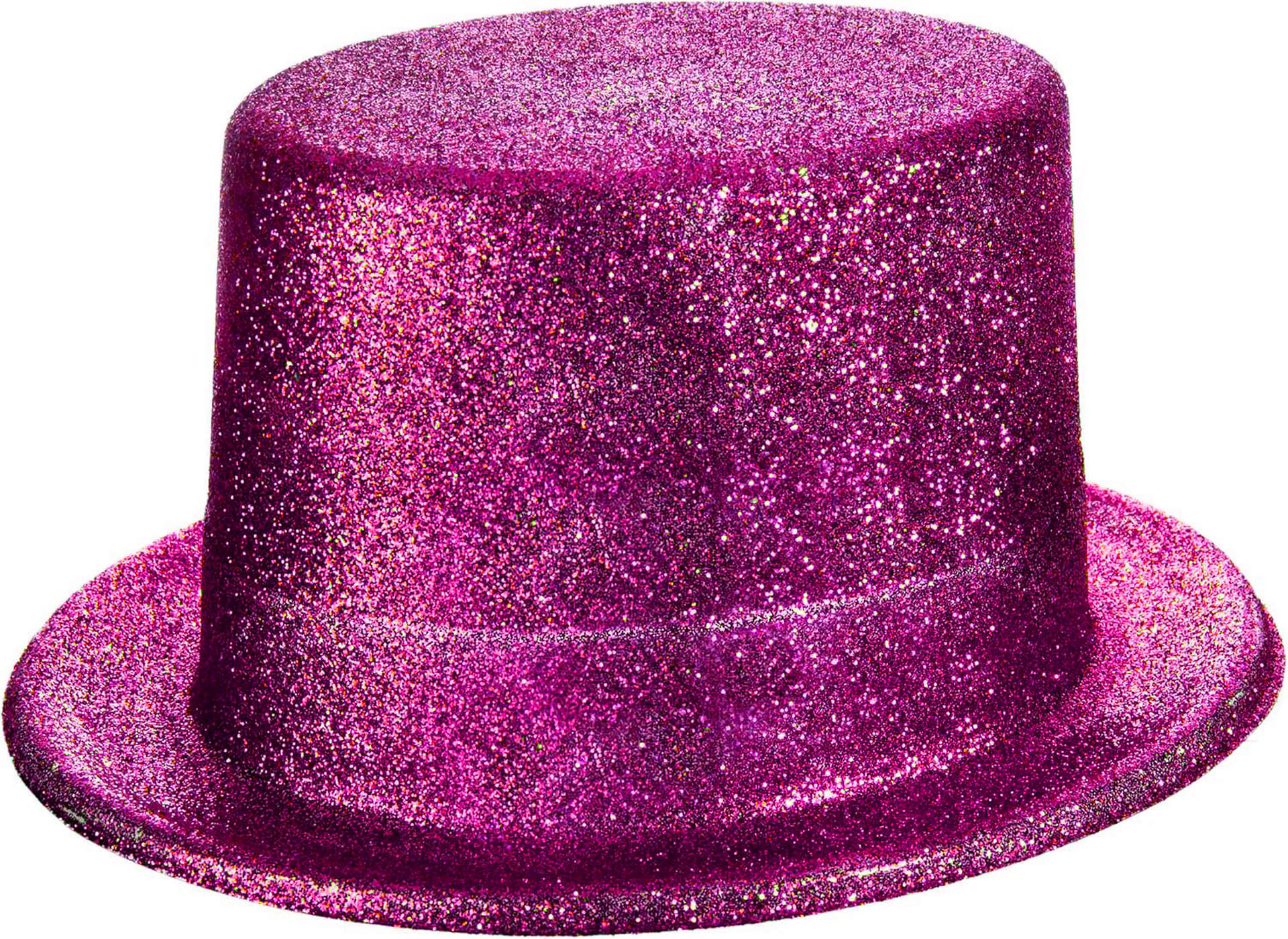 Fuşya Pembe Renk Parıltılı Simli Fötr Silindir Parti Şapkası