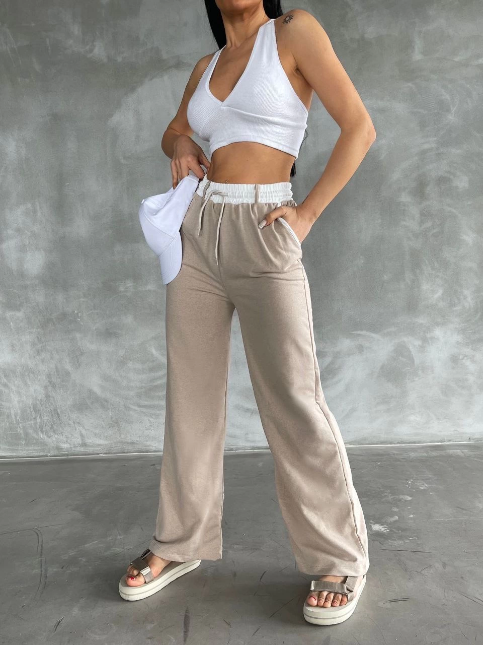 Garnili bol paça pantolon Bej (Beden: STANDART)
