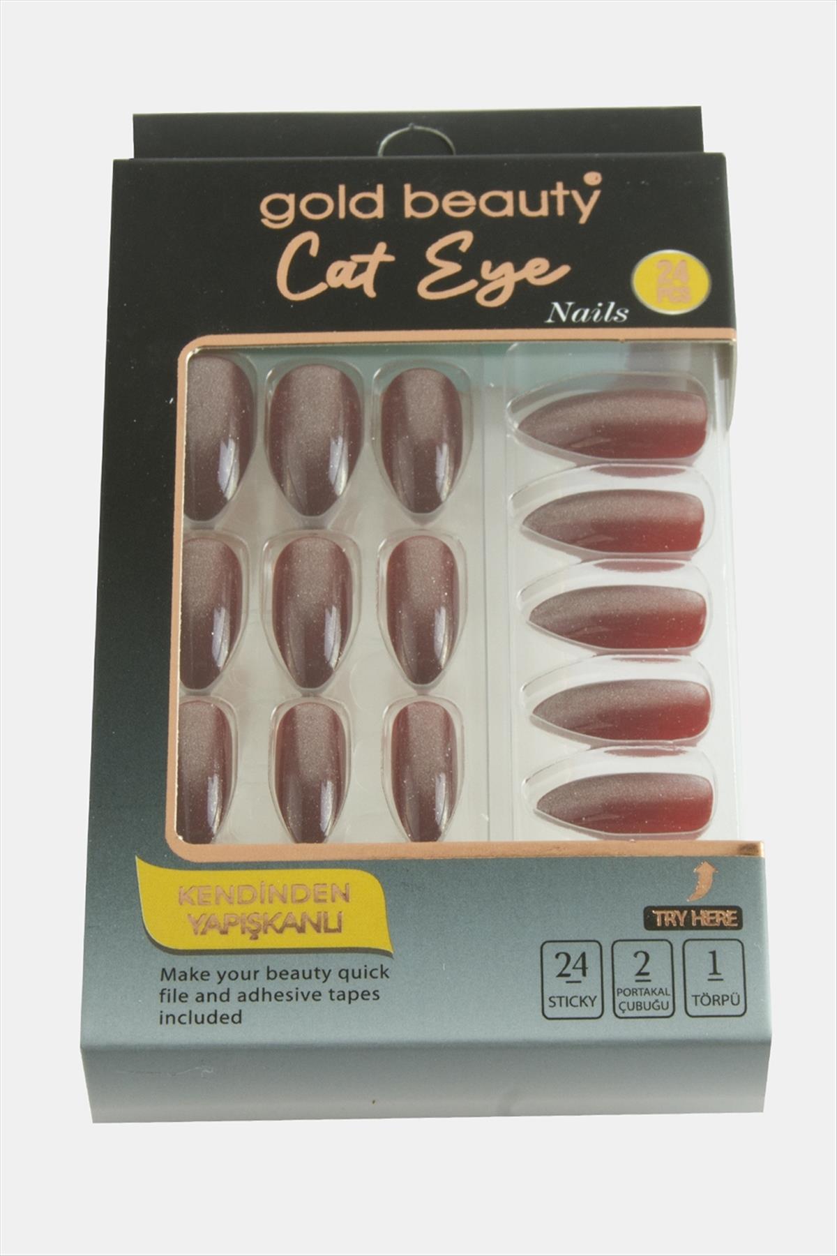 Gold 24lü Kedi Gözü Takma Tırnak-Bordo