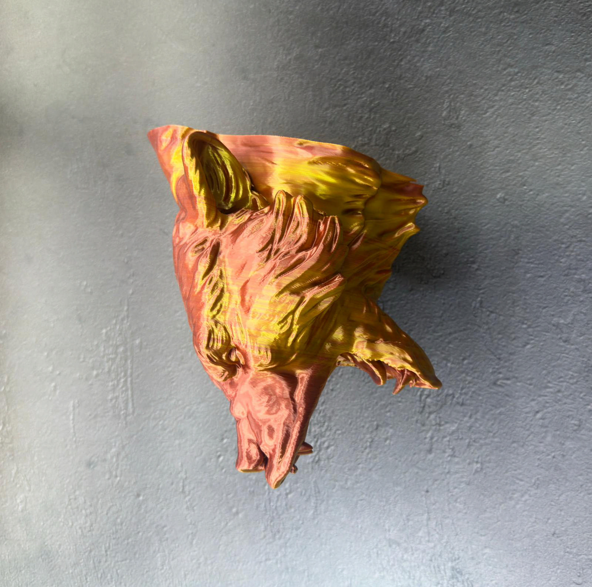 Bu dekoratif jaguar başı, altın ve kırmızı geçişli tasarımı ile standart duvar dekorlarından çok daha iddialı ve dikkat çekici bir görünüm sunar. 3D kabartı yapısı, yüz hatlarının keskinliği ve özel parlak kaplaması sayesinde mekâna dinamik ve modern bir enerji kazandırır.