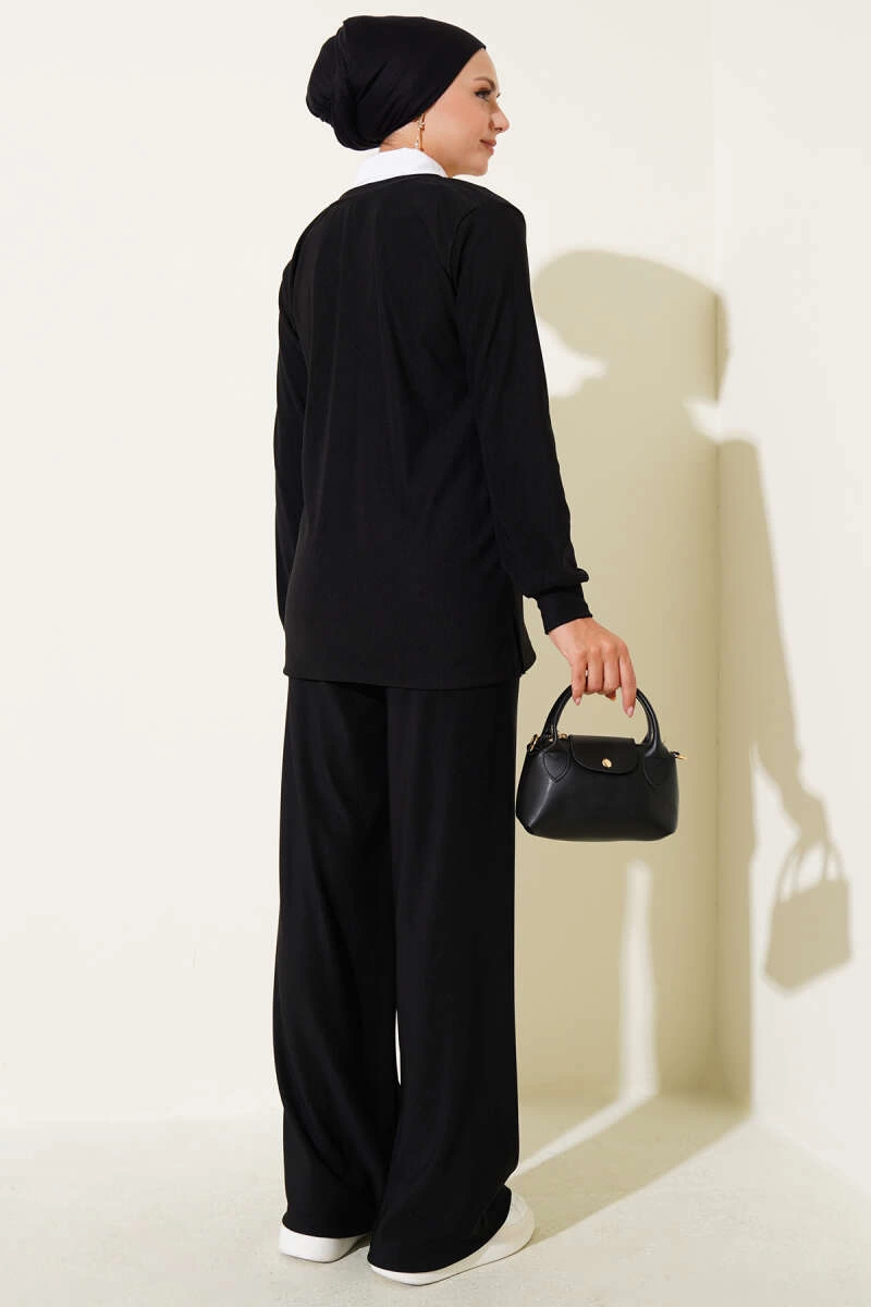 Gömlek Yaka Fitilli Salaş İkili Takım siyah T4300 (Beden: L)