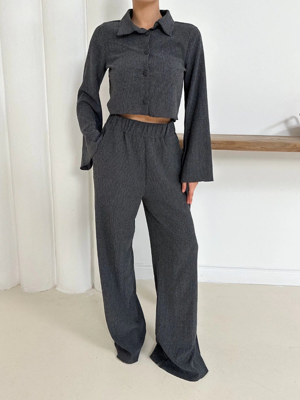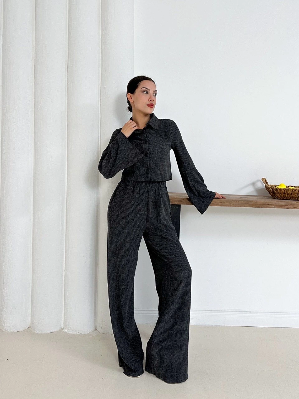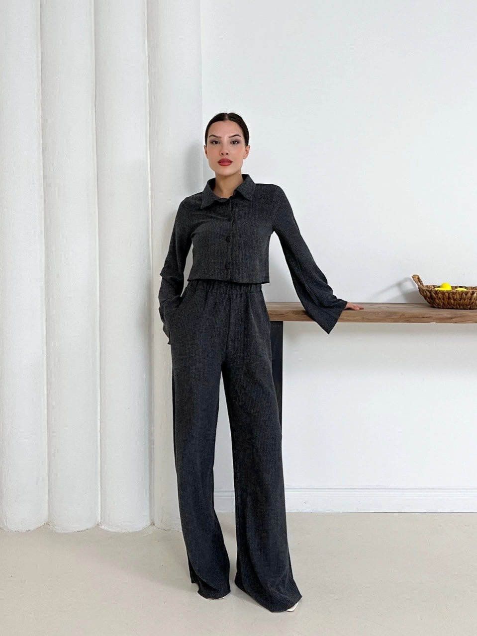 Şıklığı ve zarafeti bir arada sunan Gömlek Yaka Kaplama Düğmeli Takım Antrasit ST265866 ile öne çıkın.