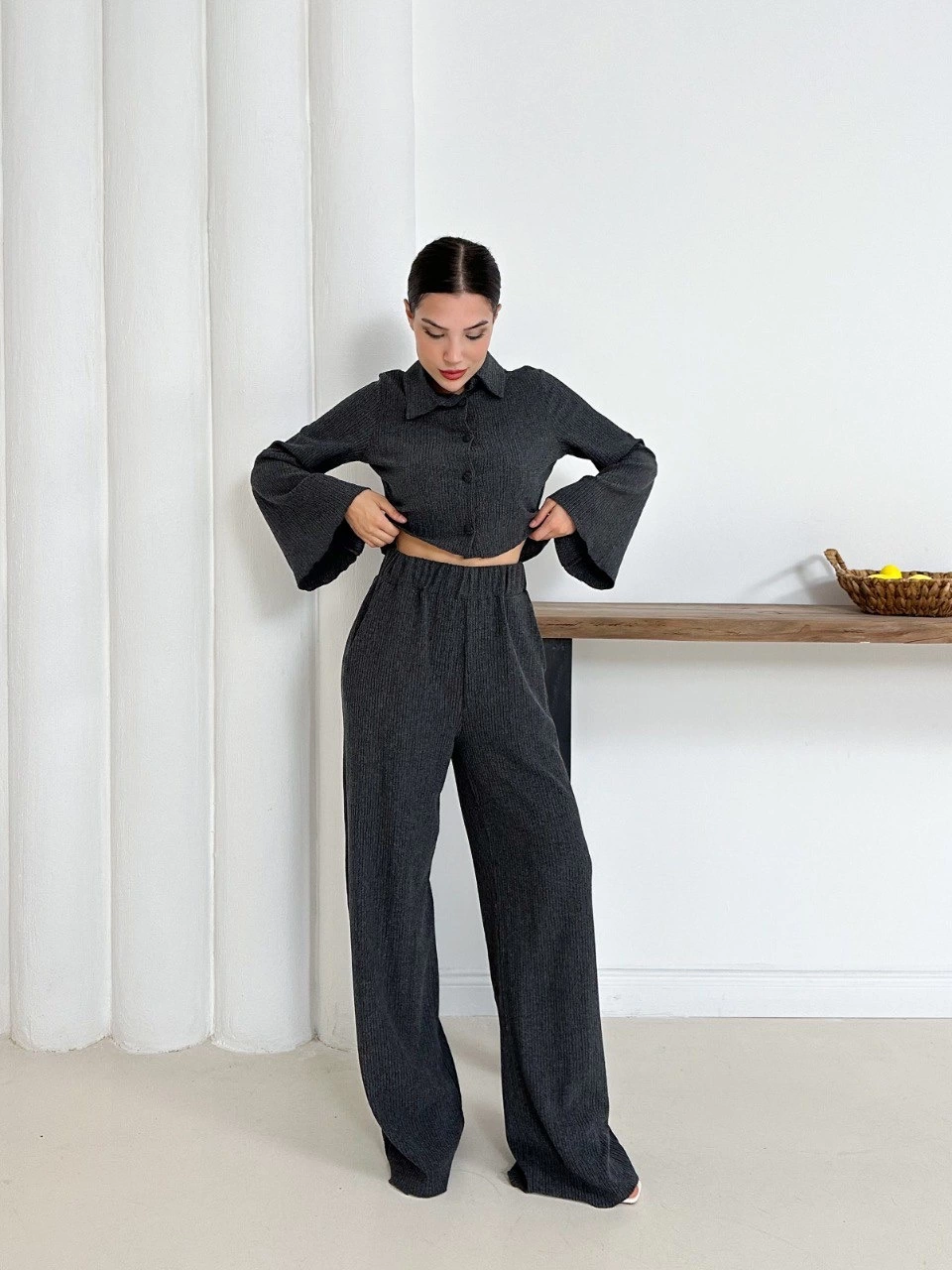 Gömlek Yaka Kaplama Düğmeli Takım Antrasit St265866 (Beden: S)