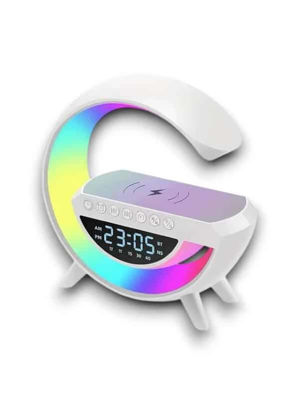 Kablosuz Şarj Özellikli Bluetooth Hoparlör Gece Lambası’nın rahatlığının tadını çıkarın Bu hepsi bir arada cihaz, size kristal netliğinde bir ses ve mükemmel bir ortam sağlamak için tasarlanmıştır. Dahili NFC şarjı, kablosuz şarj özelliği, ayarlanabilir parlaklık ayarları ve sezgisel çalar saati ile bu hoparlörün evinize rahatlık ve stil katacağından emin olabilirsiniz. ahili Bluetooth 5.0 Hoparlör, müzik akışı için telefonunuza veya başka bir cihaza kolayca bağlanın. Kablosuz şarj teknolojisi ve NFC Şarj ile telefonunuzu ve hoparlörü kabloları takmadan şarj etmenizi sağlar. LED gece lambası özelliği sıcak beyazdan RGB ışıklara ayarlanabilir. FM radyo ve birçok farklı fonksiyonu ile başucu arkadaşı olarak kullanım için mükemmeldir. FM radyo ve birçok farklı fonksiyonu ile başucu arkadaşı olarak kullanım için mükemmeldir. Boştayken düşük güç tüketimi, enerji tasarruflu ve çevre dostu tasarım. Uzun ömürlü dayanıklılık için üstün kaliteli ABS malzeme ve üstün ses kalitesi. Akıllı telefonlar ve tabletler de dahil olmak üzere çoğu cihazla uyumlu çoklu ses girişleri ve çıkışları. Kompakt boyutu ve hafif tasarımı, taşınabilir ve taşınması kolay olmasını sağlar. Sürükleyici bir dinleme deneyimi için derin bas ve kristal netliğinde tizler içeren stereo ses efekti. Bluetooth ile kablosuz bağlanır ve 10 saate kadar oynatma süresi sağlar. Daha fazla rahatlık için eller serbest aramayı destekler.Akıllı Telefon / Tablet Uygulaması, Ekolayzır ayarları, Uyku Zamanlayıcısı vb. gibi daha fazla özellik için kullanılabilir. Yapısıyla güvenli dış mekan kullanımı sunar. Farklı renk geçişleriyle odanızda muhteşem bir görünüme ulaşabilirsiniz.