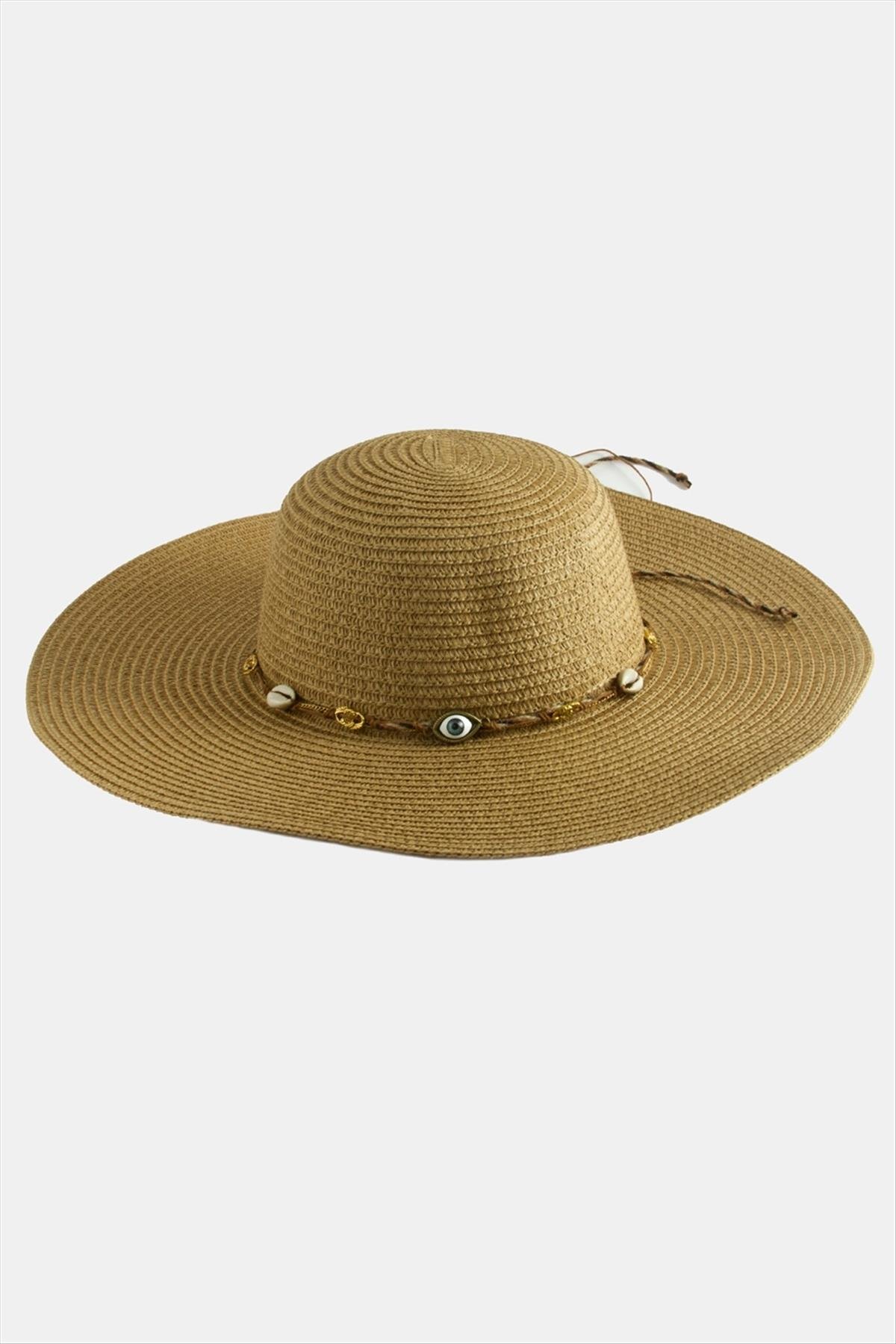 Göz Örme Zincir Hasır Şapka-Kahverengi