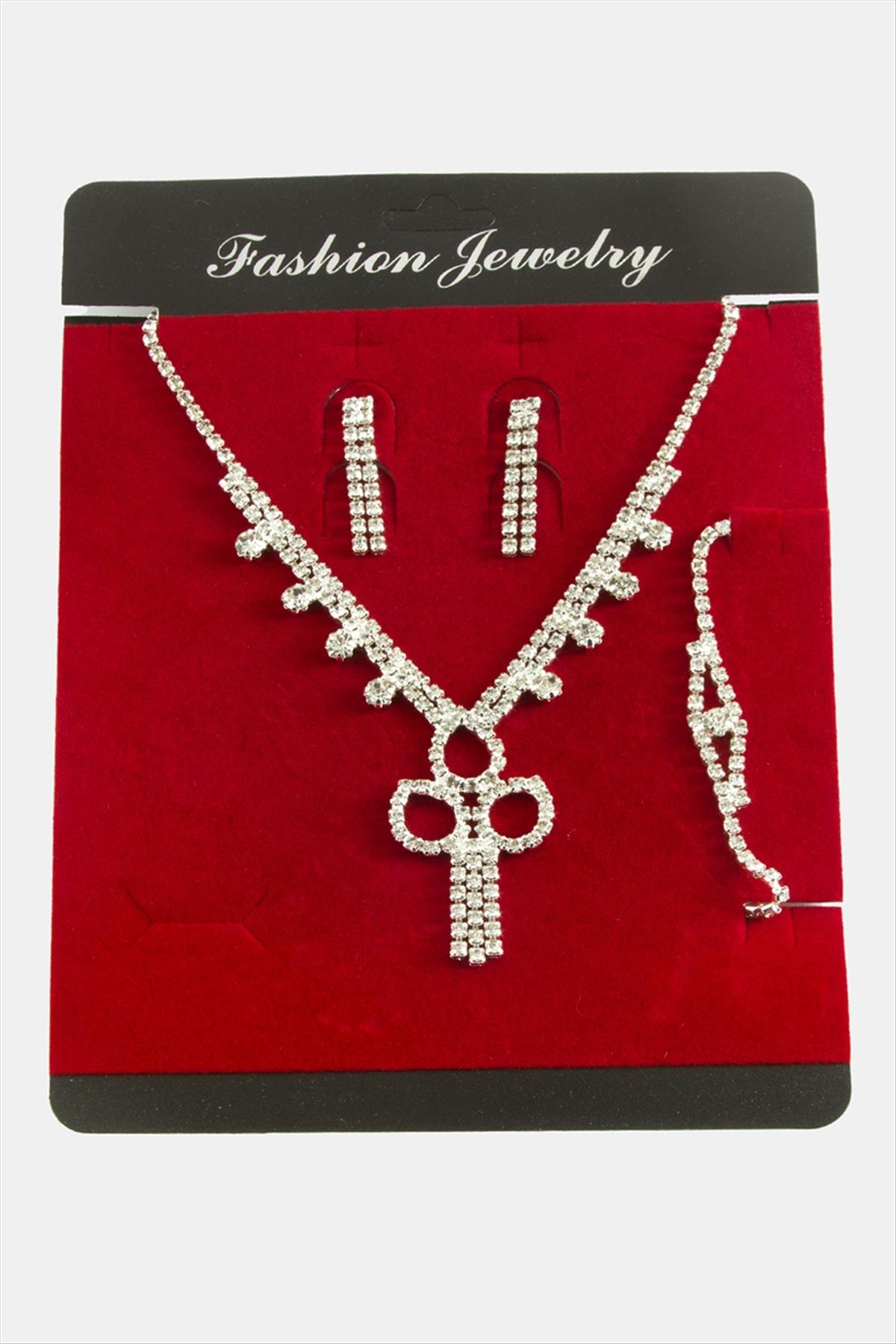 Göz Taşlı Lüks Suyolu Set Kolye-Gümüş Rengi