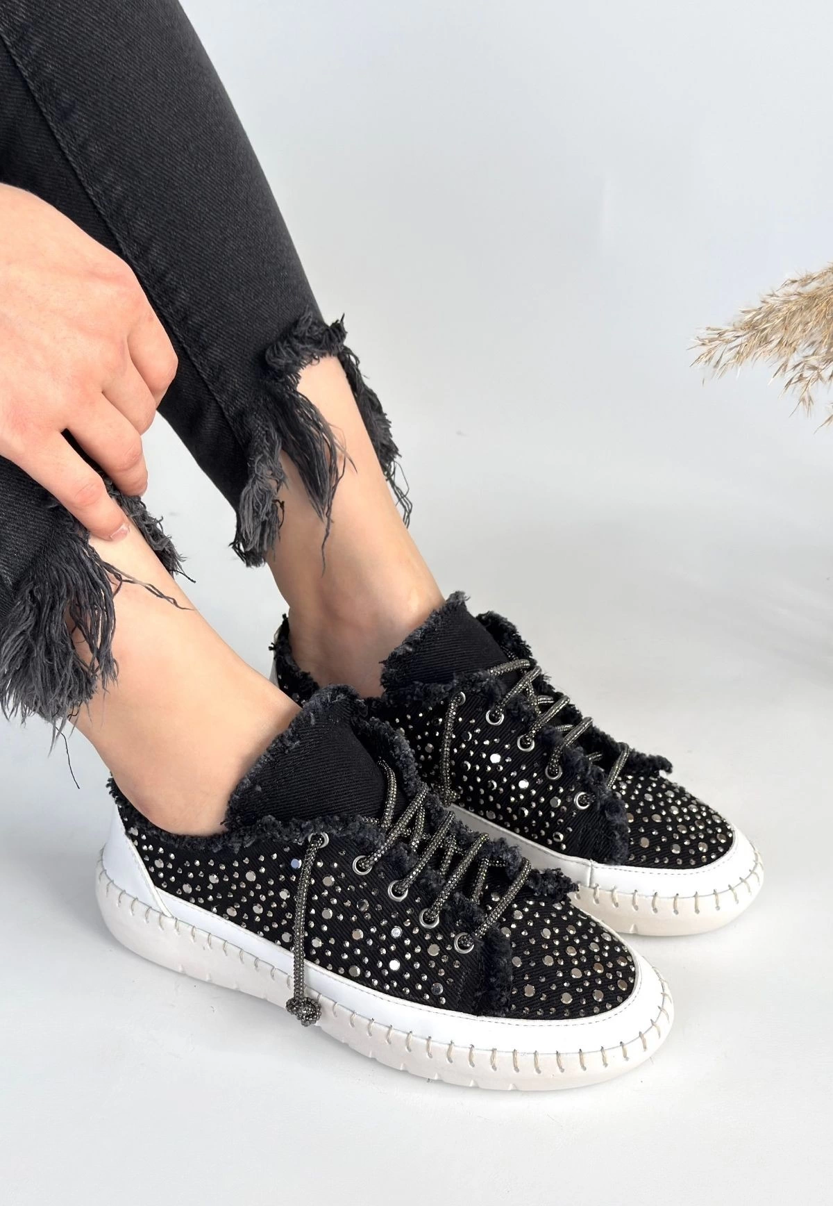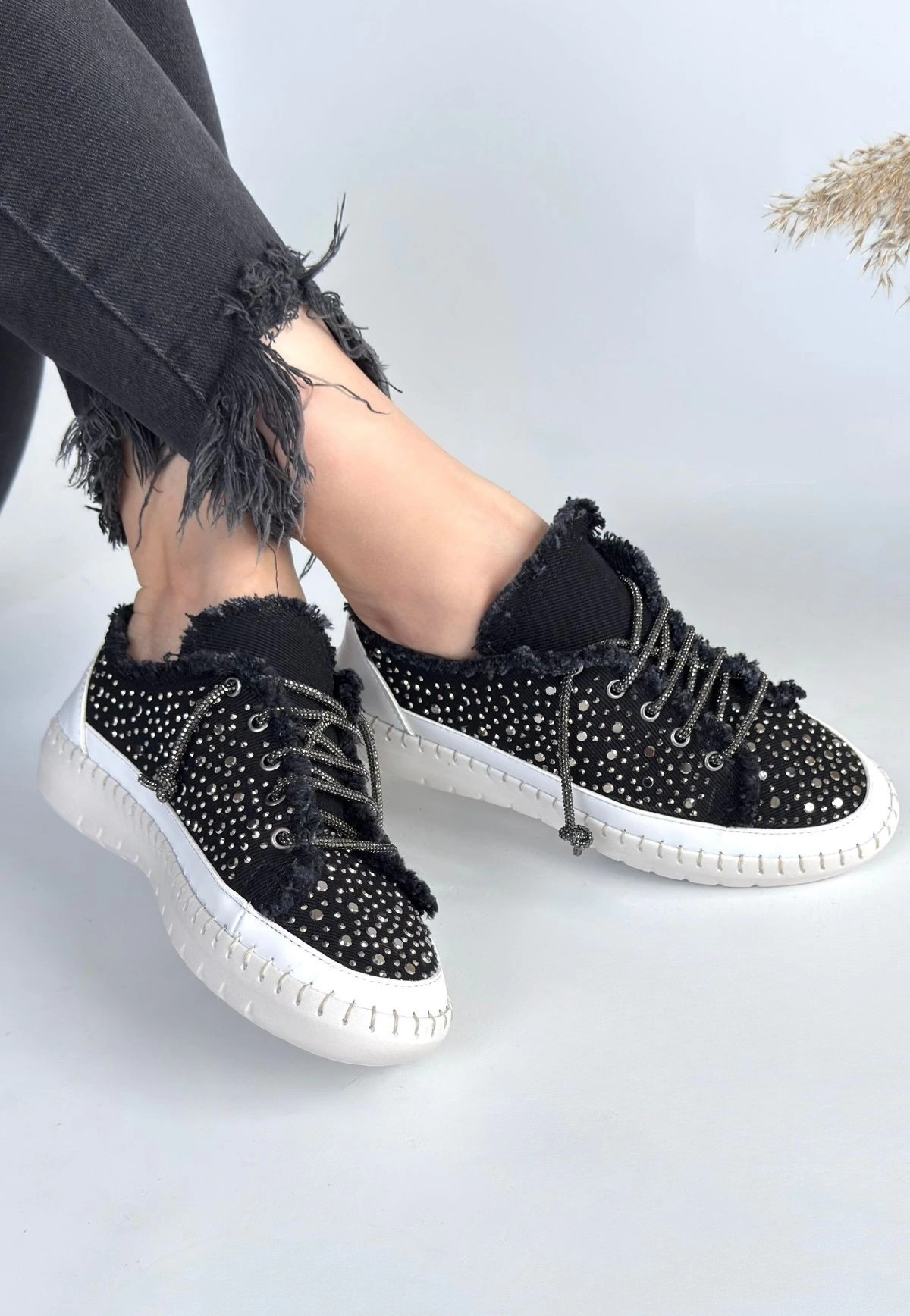 Guji Siyah Kot Bağcıklı Spor Ayakkabı (Numara: 36)