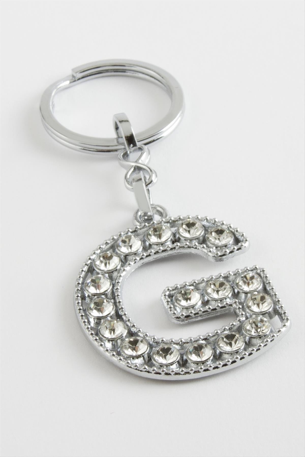 Gümüş Renkli Taşlı Harf Anahtarlık-G