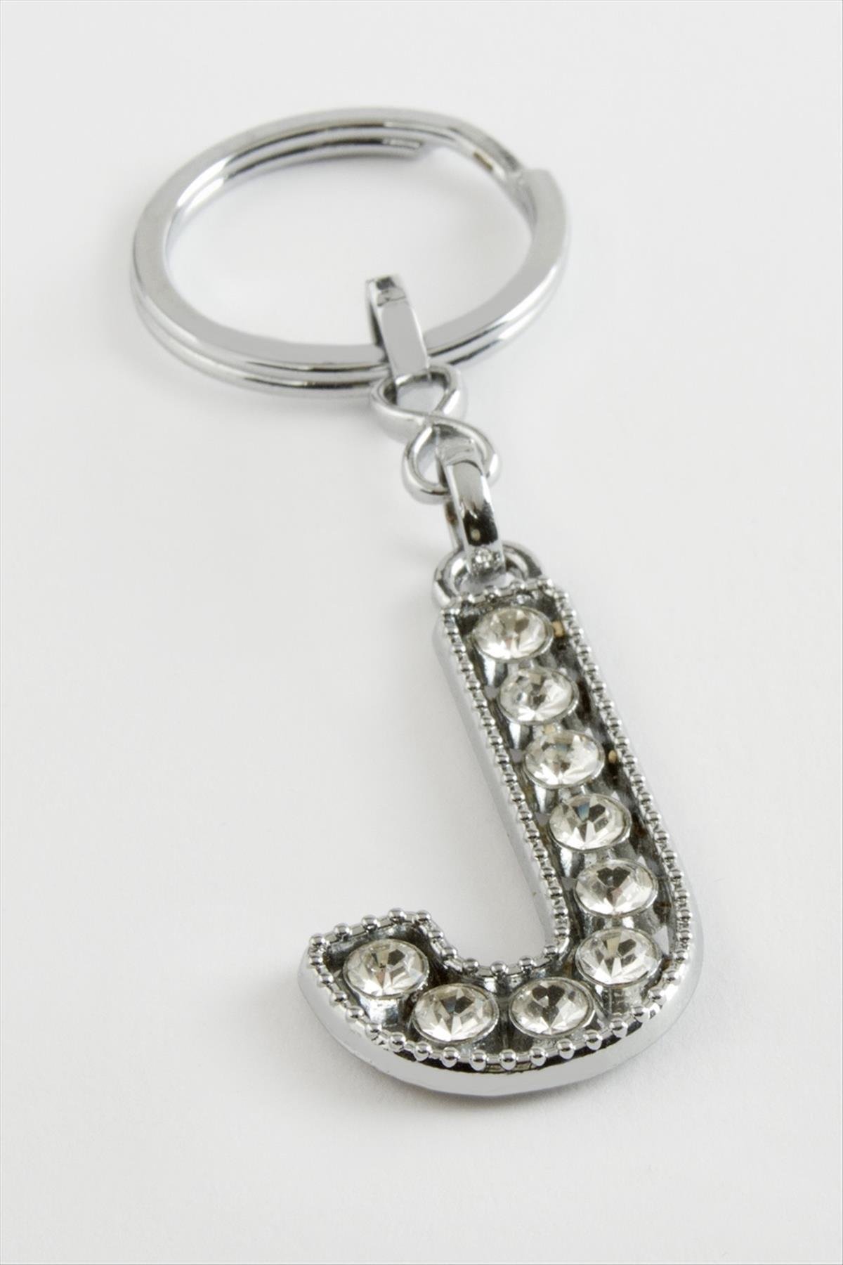 Gümüş Renkli Taşlı Harf Anahtarlık-J