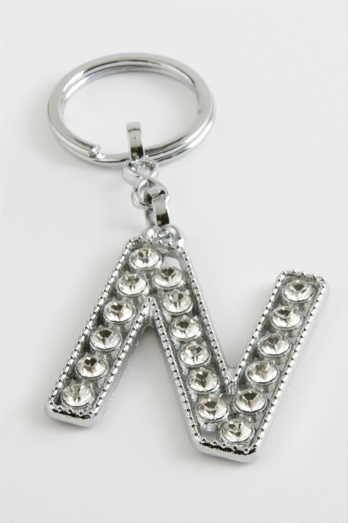 Gümüş Renkli Taşlı Harf Anahtarlık-N