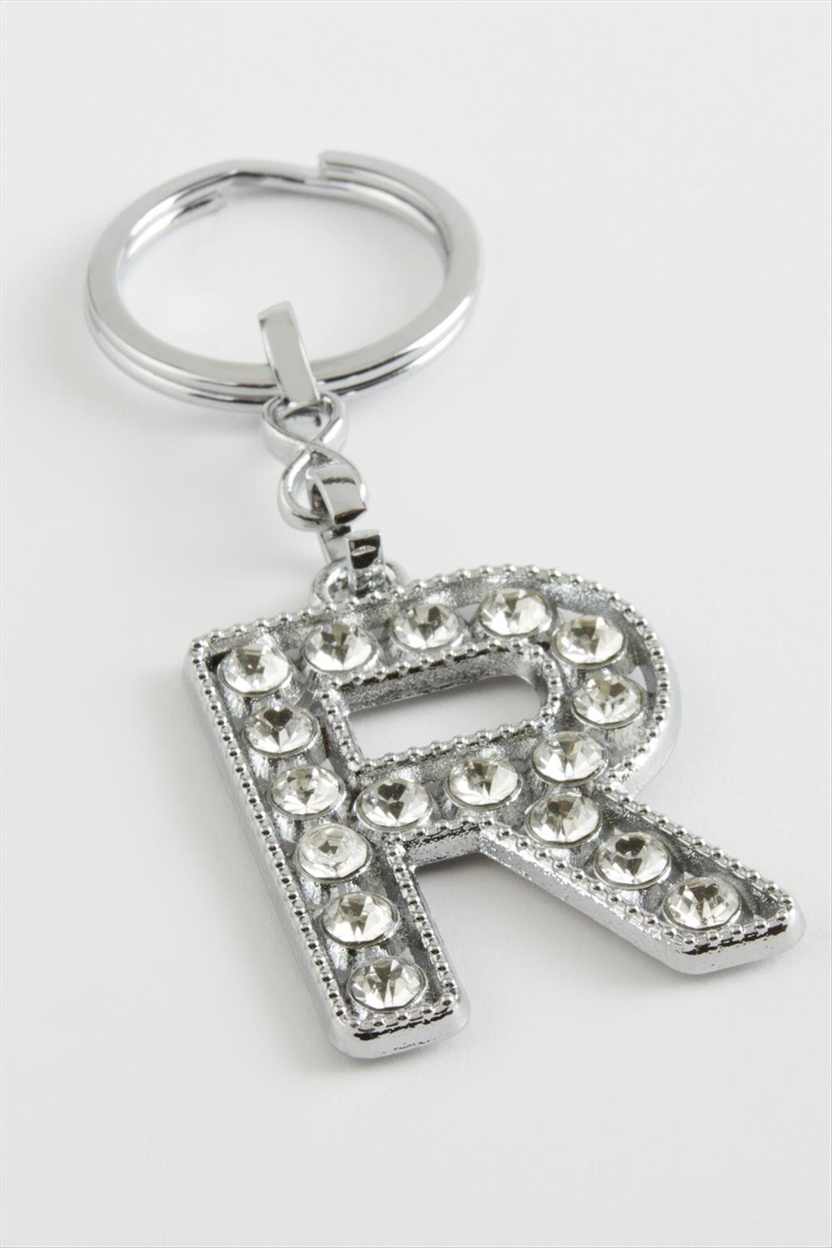 Gümüş Renkli Taşlı Harf Anahtarlık-R