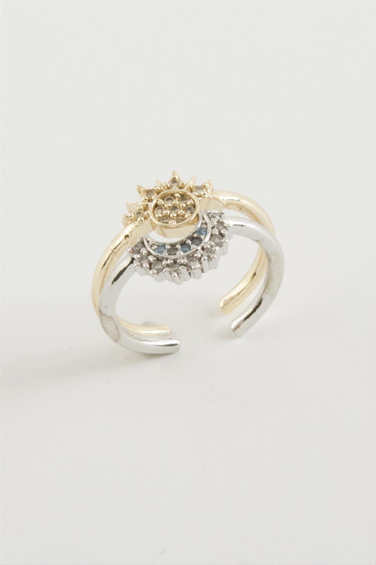 Güneş Hilal Zirkon Taşlı Yüzük 2 Adet-Sarı