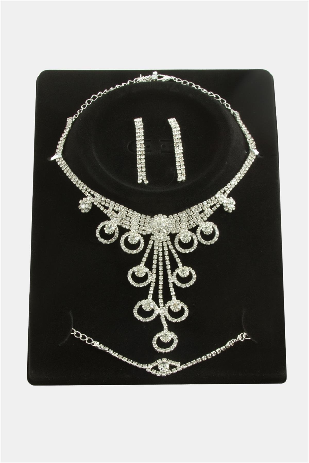 Halka Taşlı Lüks Set Kolye-Gümüş Rengi