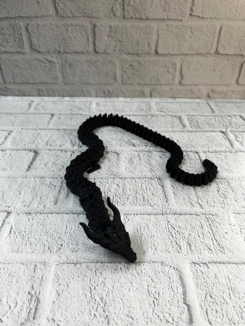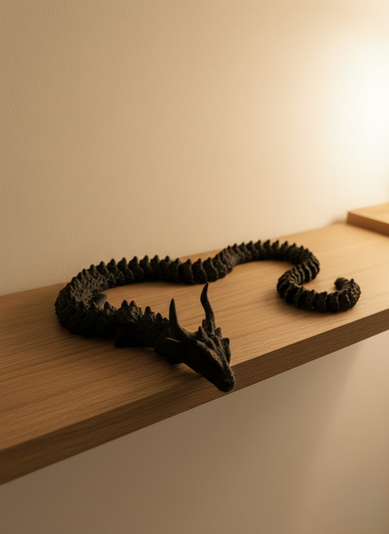 Hareketli Siyah Ejderha Figürü, uzun ve detaylı gövde yapısıyla güçlü bir görsel etki oluşturur. 60 cm uzunluğundaki tasarımı, ürünü sıradan masa figürlerinden ayırarak daha dikkat çekici hale getirir. Eklemli yapısı sayesinde ejderhanın gövdesi kıvrılabilir, farklı pozisyonlar verilerek dekorasyon tarzına göre şekillendirilebilir.
