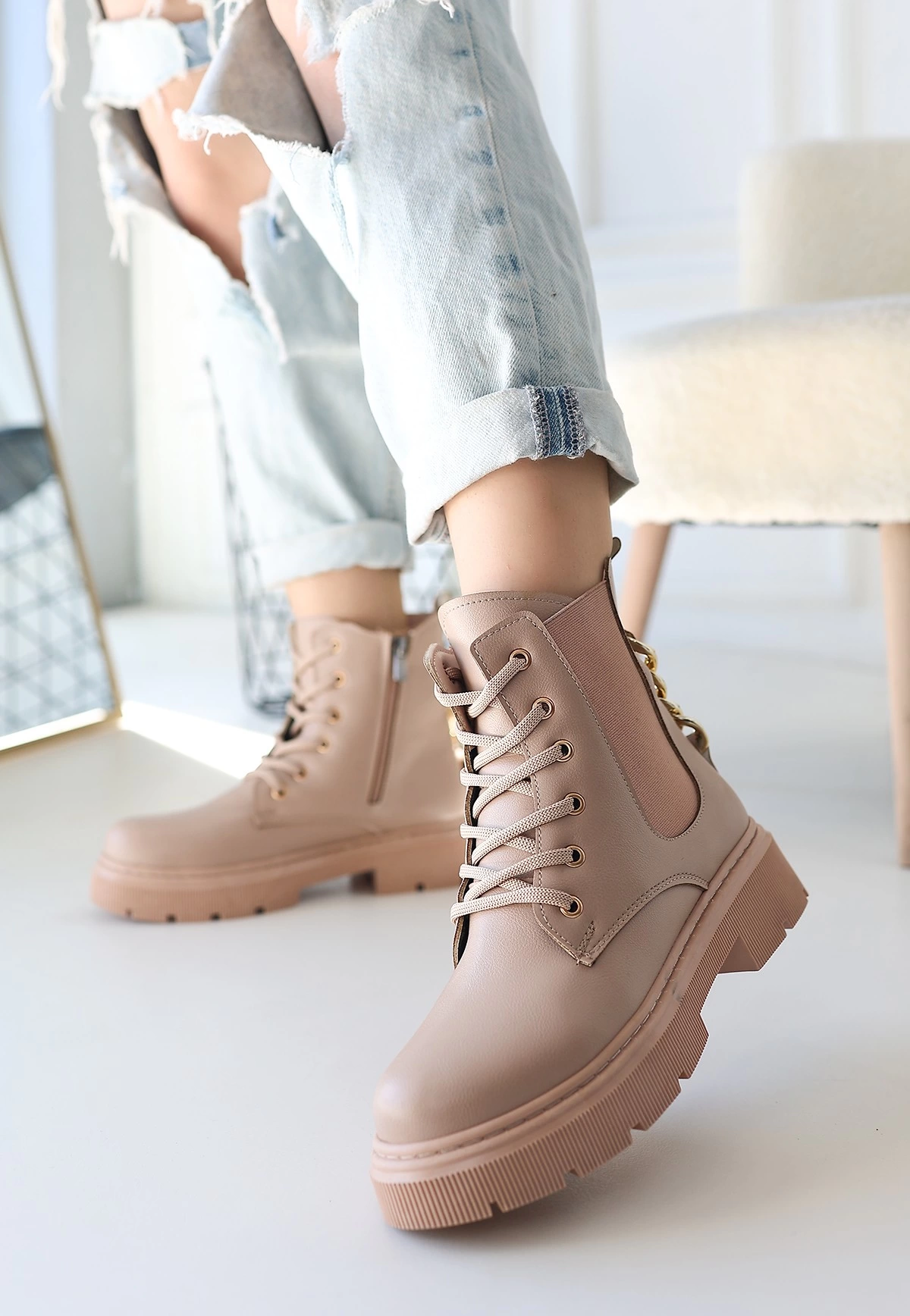 Harte Nude Cilt Bağcıklı Bot (Numara: 38)