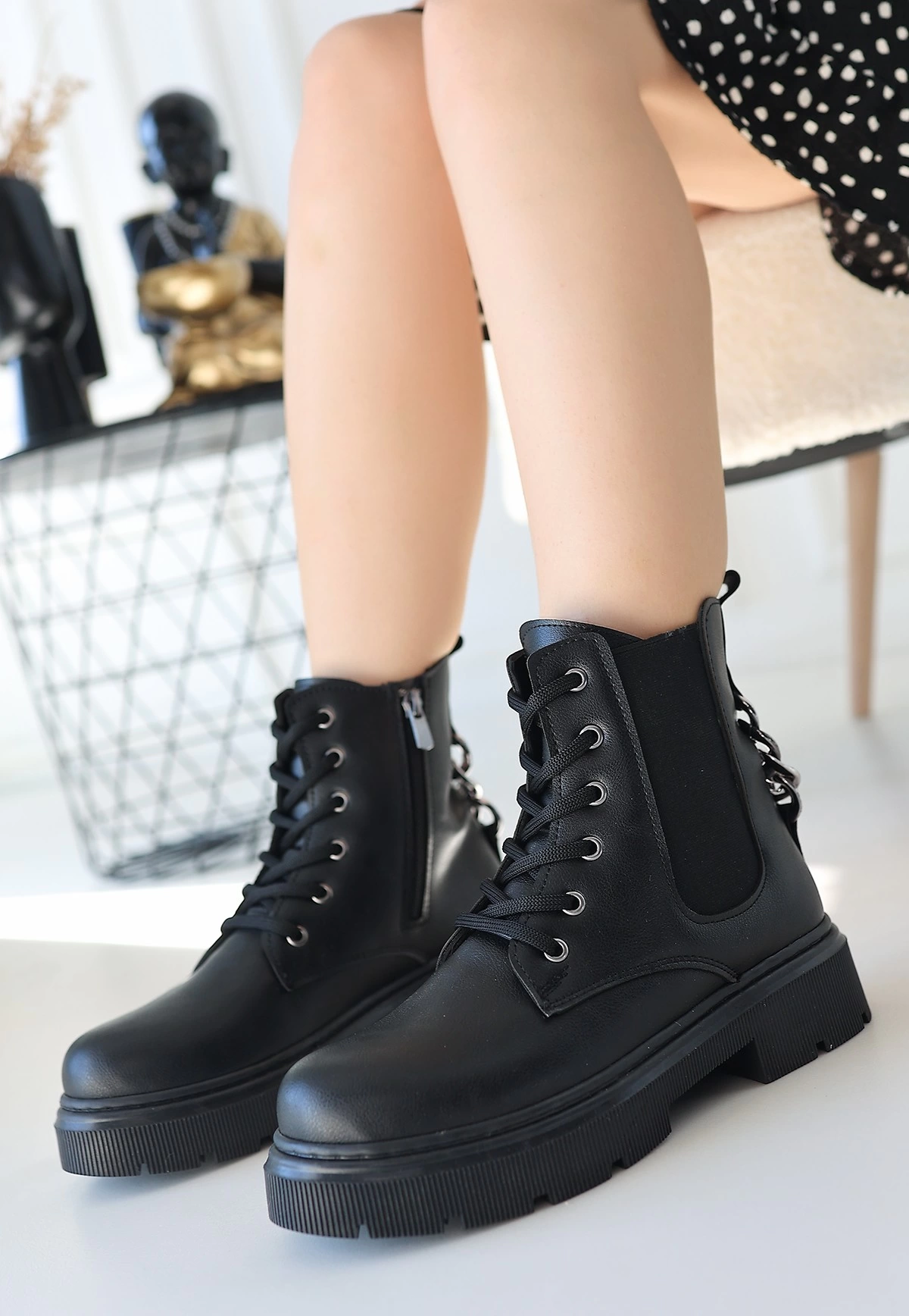 Harte Siyah Cilt Bağcıklı Bot (Numara: 36)