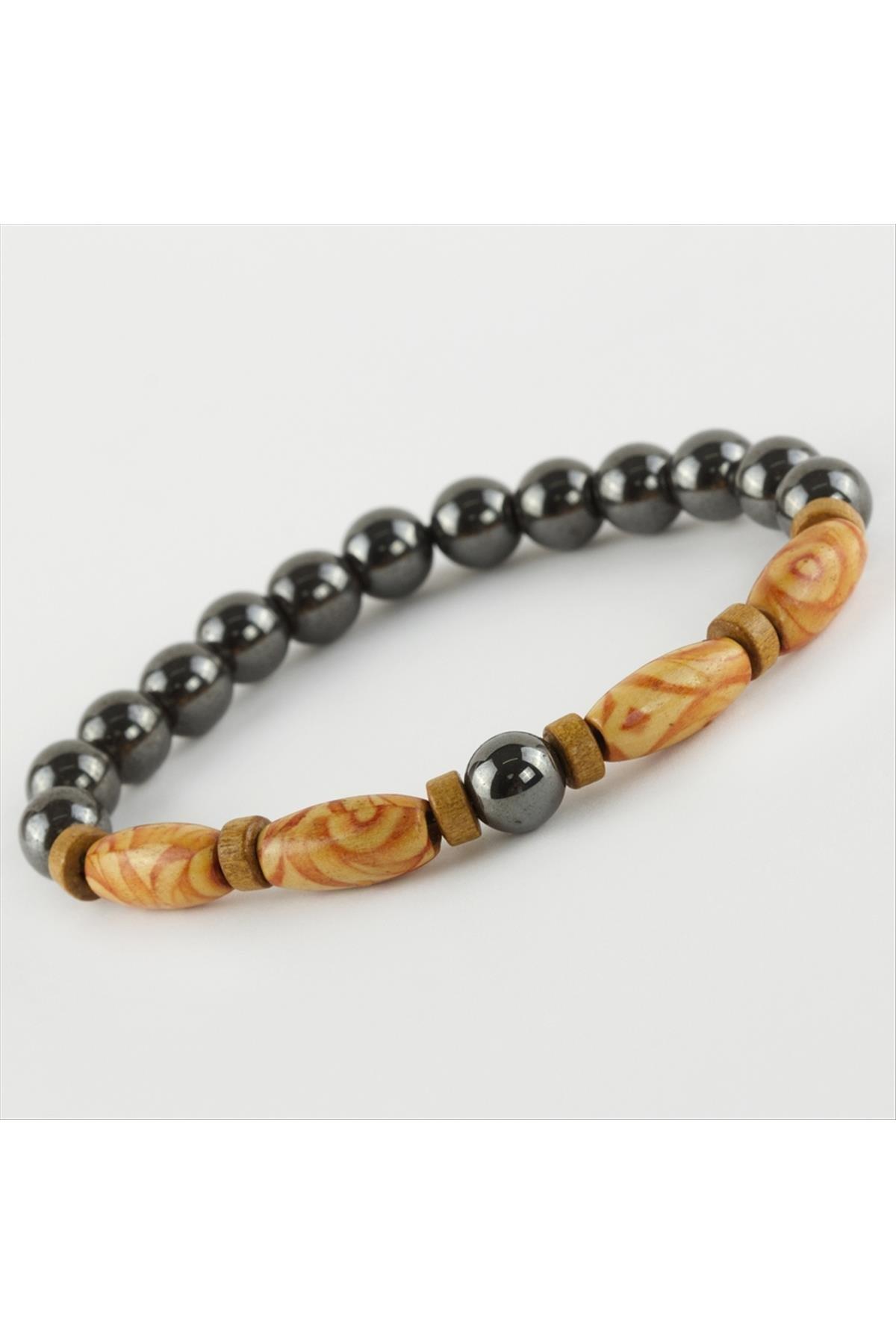 Hematit Ahşap Trend Yeni Sezon Doğaltaşlı Bileklik-Kahverengi