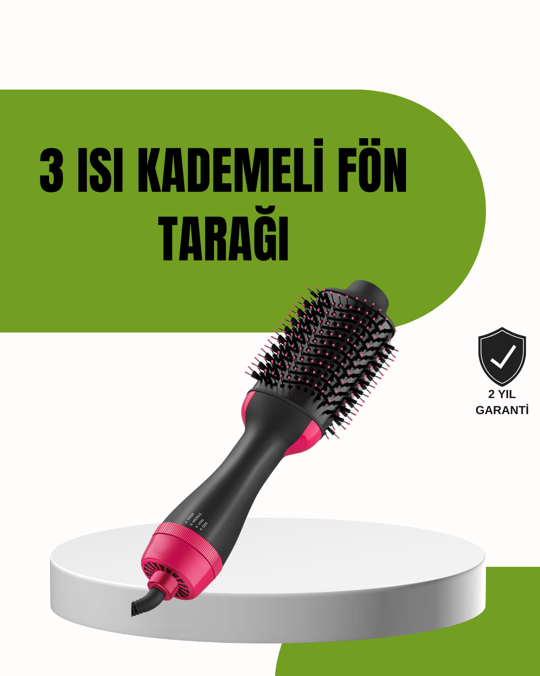 Profesyonel saç şekillendirme deneyimini evinize getiren bu fönlü fırça, tek adımda kurutma ve şekillendirme imkânı sunar. Oval fırça tasarımı, kökten uca hacim kazandırır ve saçın doğal yapısını bozmadan pürüzsüz bir bitiş sağlar.Negatif iyon teknolojisi, saç tellerinde statik elektrik oluşumunu engeller, nem dengesini koruyarak parlak ve sağlıklı bir görünüm verir. 3 farklı ısı modu ve soğuk hava fonksiyonu ile her saç tipine uygundur. Hafif ve ergonomik yapısıyla kolay kullanım sağlar.Ürün Özellikleri: