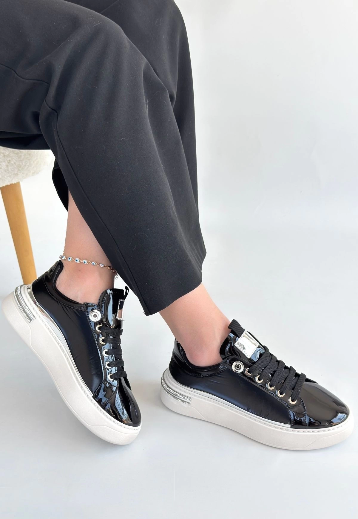 Hley Siyah Rugan Paraşüt Detaylı Bağcıklı Spor Ayakkabı (Numara: 37)